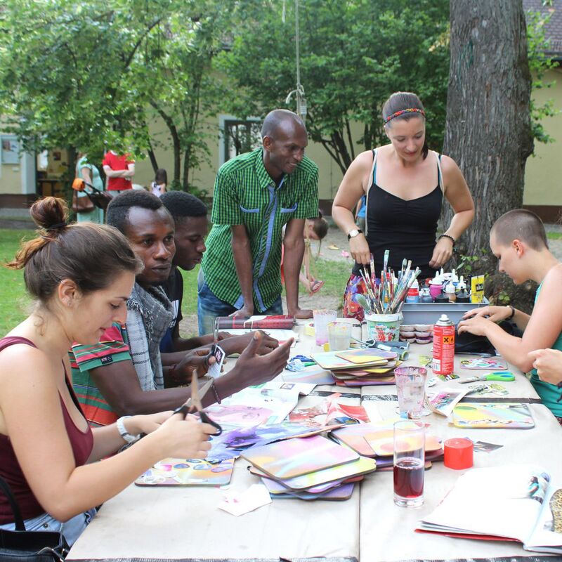 Plastisch, zeichnerisch oder malerisch – beim gemeinsamen Arbeiten erzählen sich Menschen mit und ohne Fluchterfahrung Geschichten. Sie handeln von Hobbies, Berufen, der Heimat und der Familie. Gemeinsam an einem Tisch sitzend, mit Musik im Hintergrund, entsteht eine schöne entspannte Atmosphäre und Raum für Kreativität.