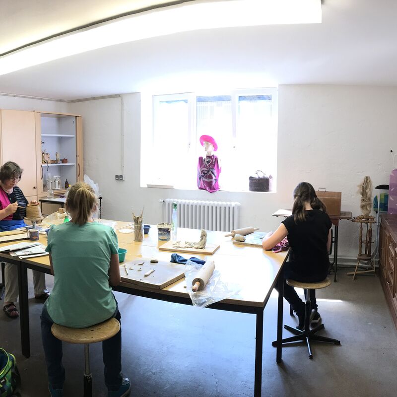 In bestimmten Zeiträumen ist die Kunstwerkstatt offen für alle, die auf vielfältige Weise ihre Kreativität ausleben möchten. Es ist keine Anmeldung erforderlich, der Eintritt ist frei und das verwendete Material kann zum Selbstkostenpreis erworben werden. Ein/e Betreuer*in unterstützt gerne bei Bedarf.