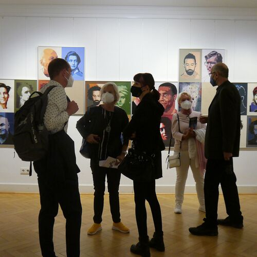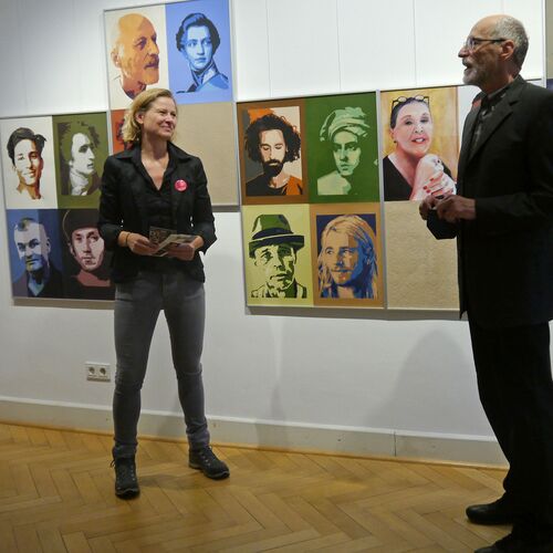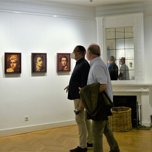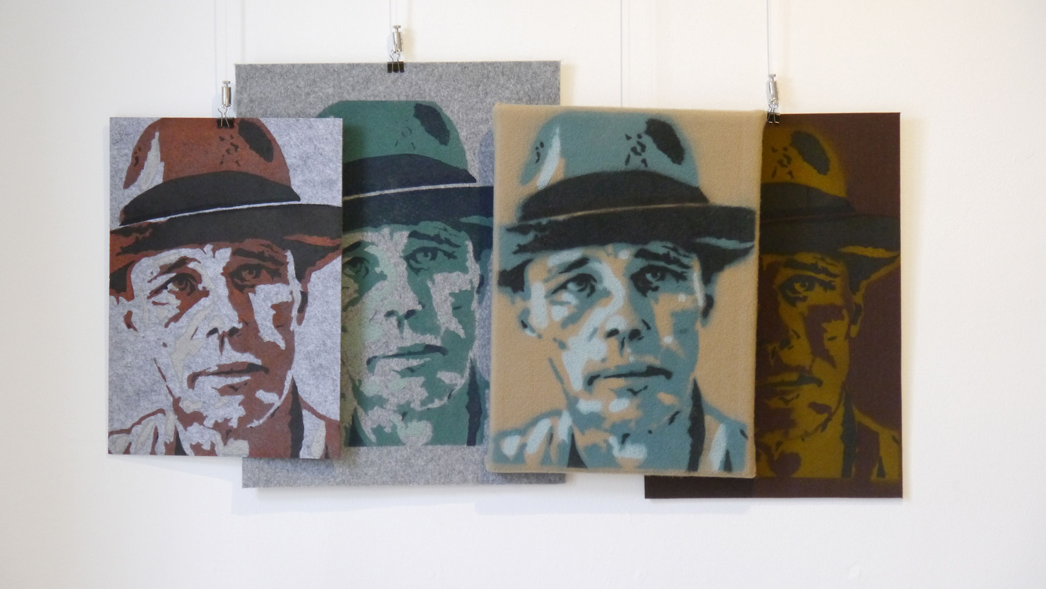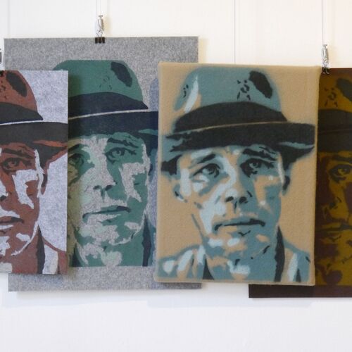 Er greift bewusst auf traditionelle Drucktechniken wie Radierung, Farbholzschnitt und Siebdruck zurück, die er jedoch stilistisch bricht oder experimentell erweitert. Eine seiner Werkgruppen kreist um epochentypische Bildnisse (Renaissance, Barock, Klassizismus), die aber in ihrer Formgebung gleichsam durch die gesamte Kunstgeschichte zurück und voraus projiziert werden; die Gemälde erinnern zugleich an Mumienporträts, byzantinische Ikonen, mittelalterliche Fresken oder Tafelmalerei und auch an gesprühte Schablonenbilder der zeitgenössischen Street Art.