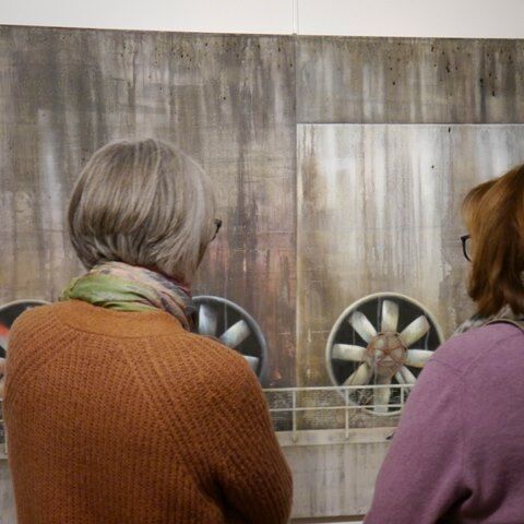 Meistens malt die Krefelderin Christine Renner leere Räume, die einen starken Tiefensog erzeugen und deutliche Spuren der zeitlichen Abnutzung aufweisen. Mit fein nuancierten Farbabstufungen gestaltet die Malerin Ansichten von Architektur und Industriebauten, angeregt durch ihren persönlichen Bezug zum Ruhrgebiet.