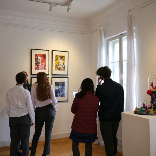 In der Sommer-Ausstellung der St. George’s School präsentieren Schülerinnen und Schüler des Kunst- und Designzweigs der international britischen Schule ihre Kunstwerke. Es handelt sich dabei um International Baccalaureate (IB)-Schülerinnen im Alter von 17 und 18 Jahren und GCSE*-Schüler:innen (General Certificate of Secondary Education) im Alter von 15 und 16 Jahren.