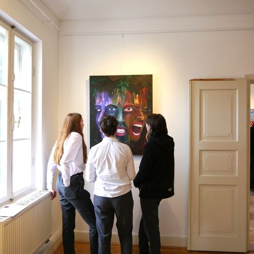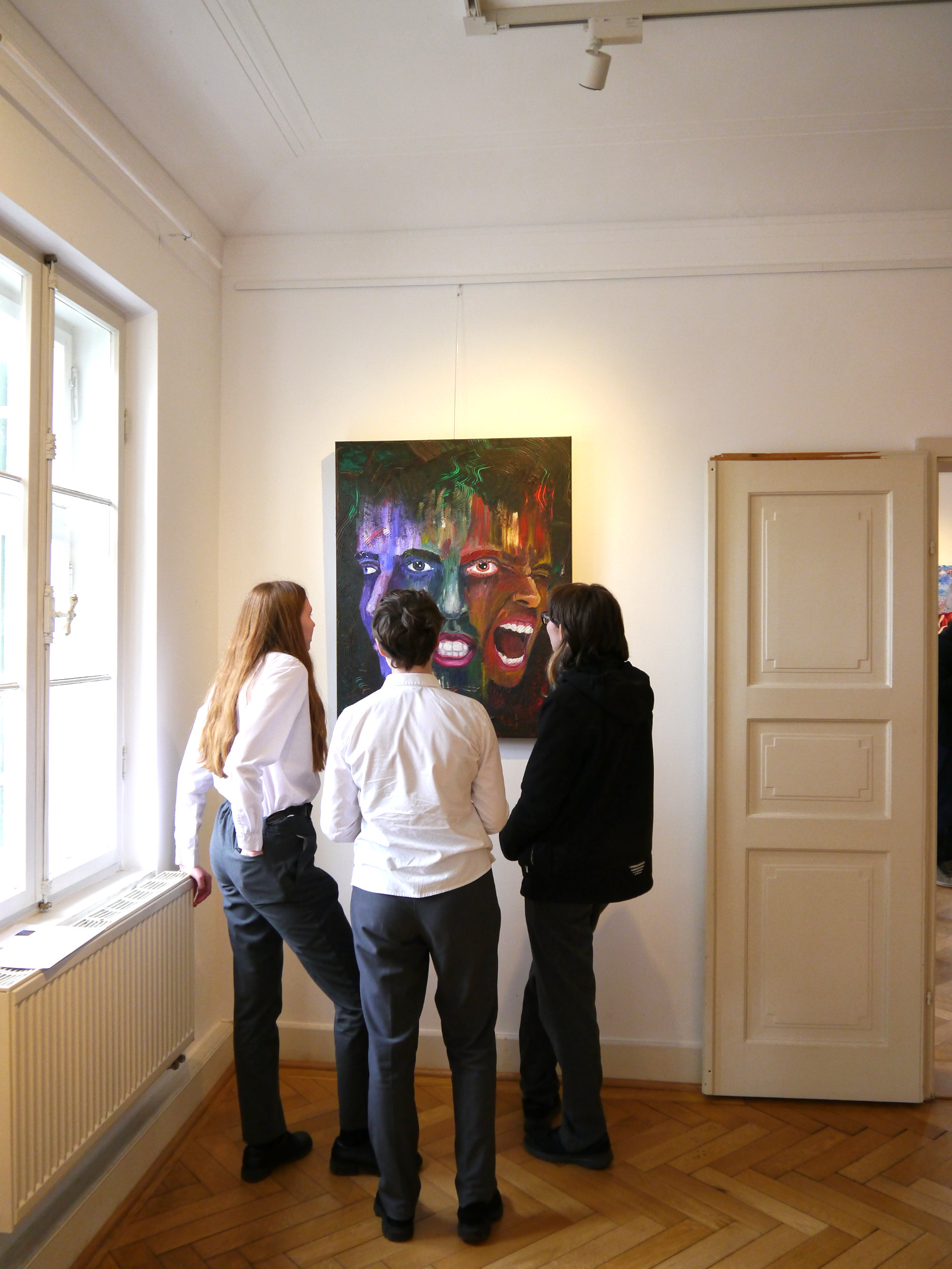 Die Anwärterinnen des internationalen Abiturs (IB) Anna Zinovieva und Viktoriia Pakholchuk haben die Aufgabe, ein Gesamtwerk zu schaffen und ihre eigene Ausstellung kuratieren. Es geht den jungen Künstlerinnen dabei um Emotionen, Wahrnehmung, Traum und Realität.
