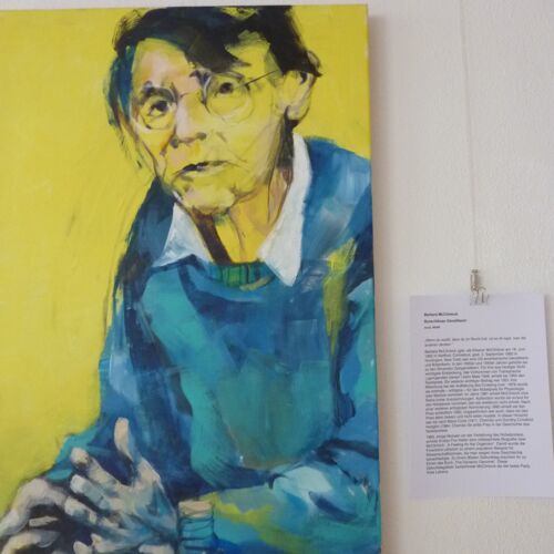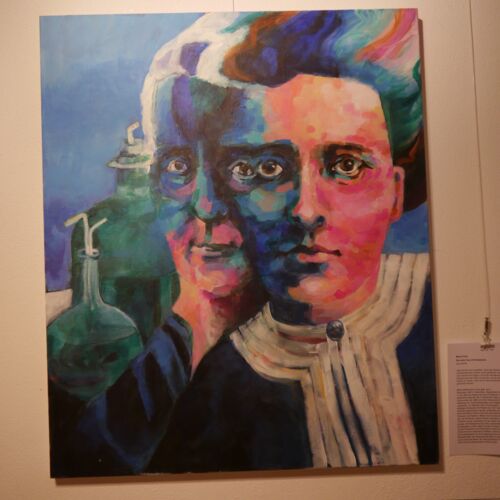 Petra Herrmann hat einige Naturwissenschaftlerinnen aus verschiedenen Epochen porträtiert – in zum Teil großformatigen Acrylbildern auf Leinwand sowie Aquarelle auf Papier.