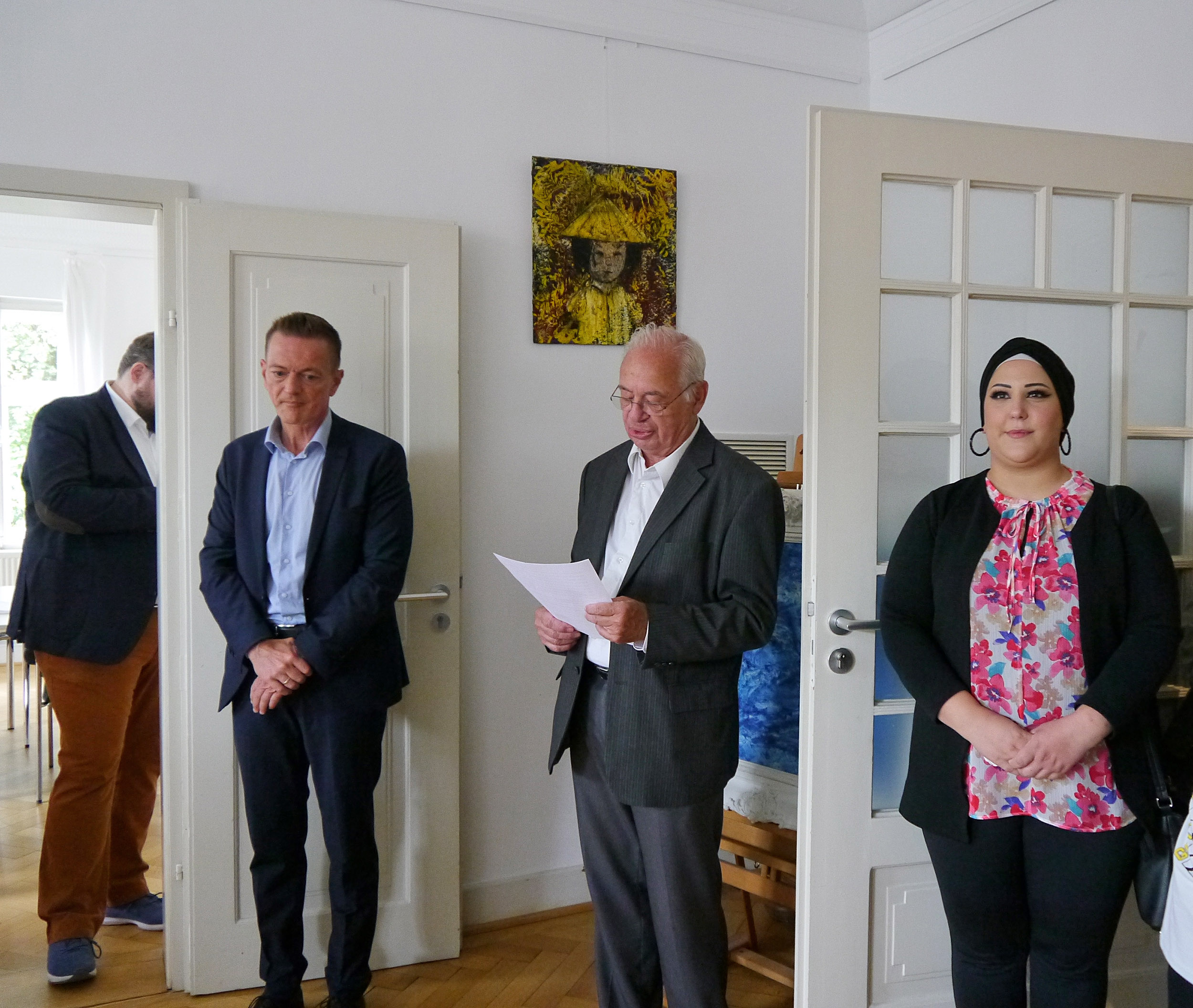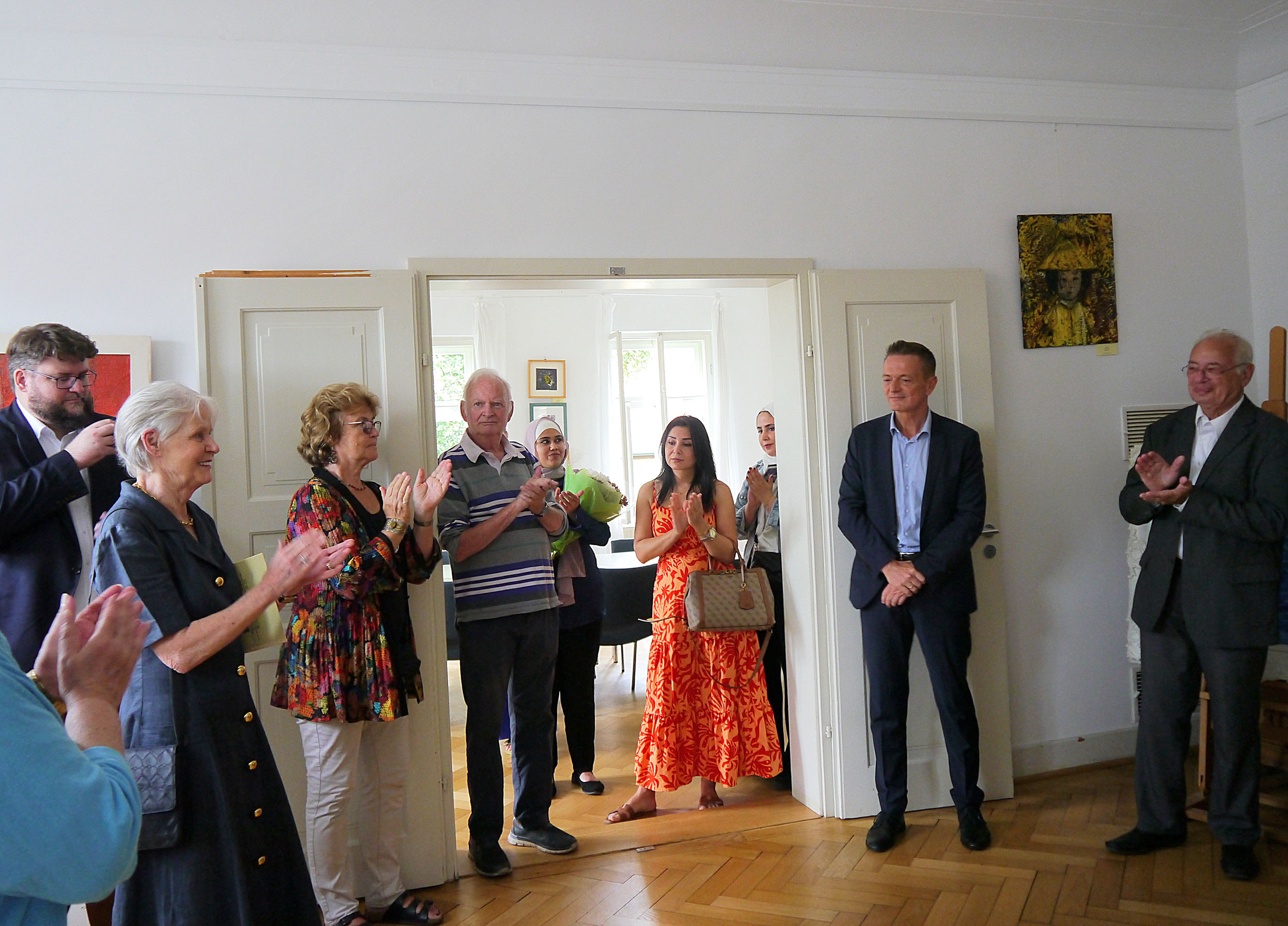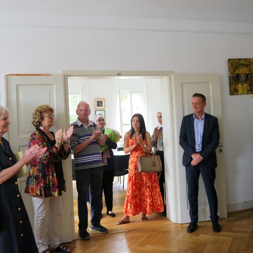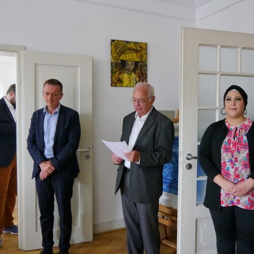 Um dieses Vorhaben zu unterstützen, organisiert der Deutsch-Syrische Verein die Ausstellung „Kunst für Frieden“ mit syrischen Künstler:innen, die ihren persönlichen Bezug zur Kunst haben und hatten. Für diese Ausstellung lädt der Verein unter der Schirmherrschaft des Kulturreferenten der Landeshauptstadt München Anton Biebl ein. Die Eröffnungsrede hält der Integrationsbeauftragte der Bayerischen Staatsregierung Karl Straub.