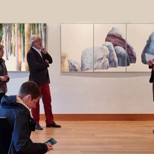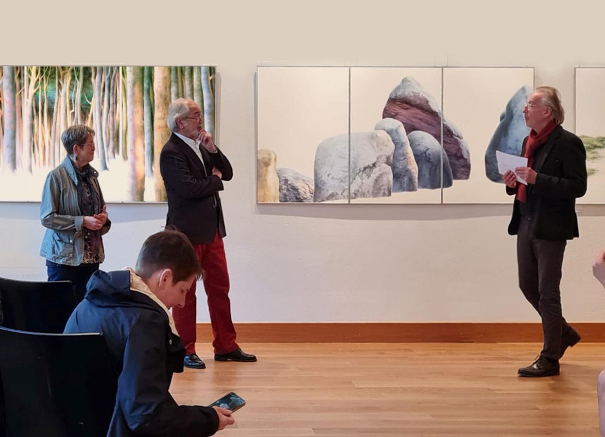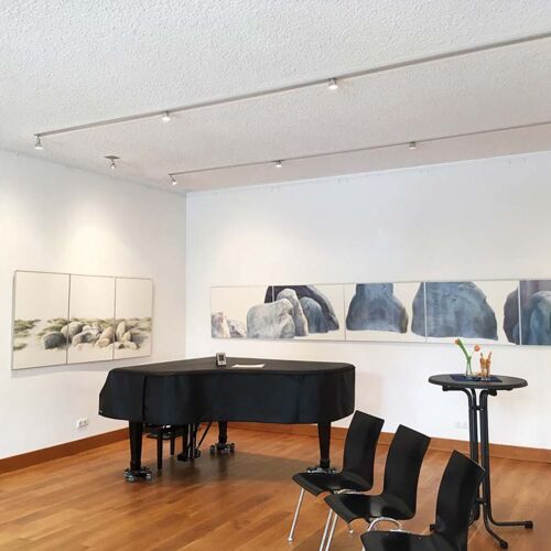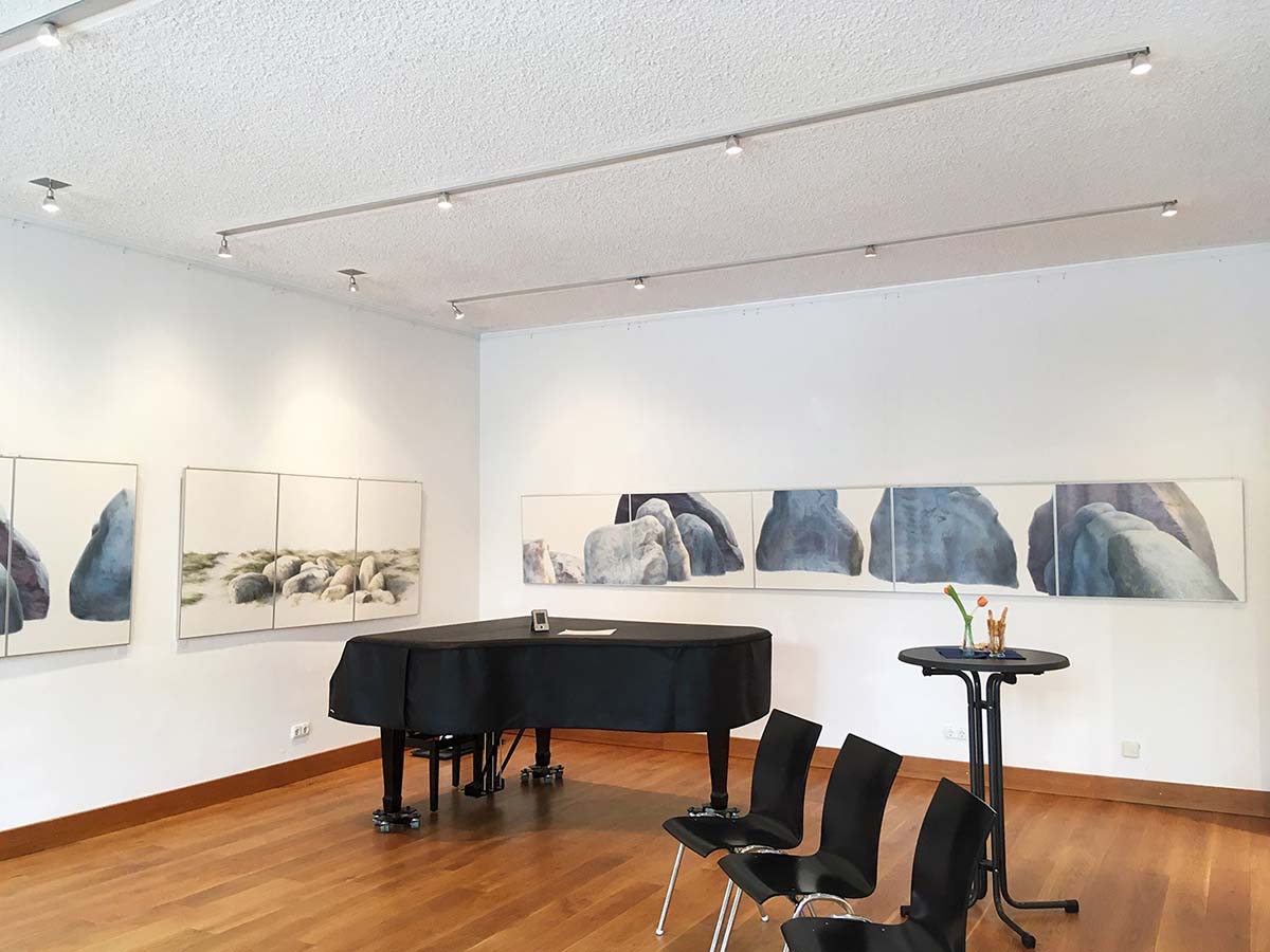 Bereits seit Stonehenge üben eigentümlich angeordnete Steine eine besondere Anziehung auf uns aus. Auch in der Fotografie sind sie ein gern gesehenes Motiv. Norbert Städele interpretiert dieses neu und legt den Fokus – im Gegensatz zur fotografischen Momentaufnahme – auf den Prozess, die Annäherung an das Werk durch die unzähligen Linien in Farbstift und Graphit. Die Ausstellung setzt diesen Zeugen längst vergangener Tage ein Denkmal. Hier gleicht kein Stein dem anderen. Stattdessen wird der Megalith als Individuum dargestellt, als Dichter seiner ganz eigenen, Äonen umspannenden Geschichte.