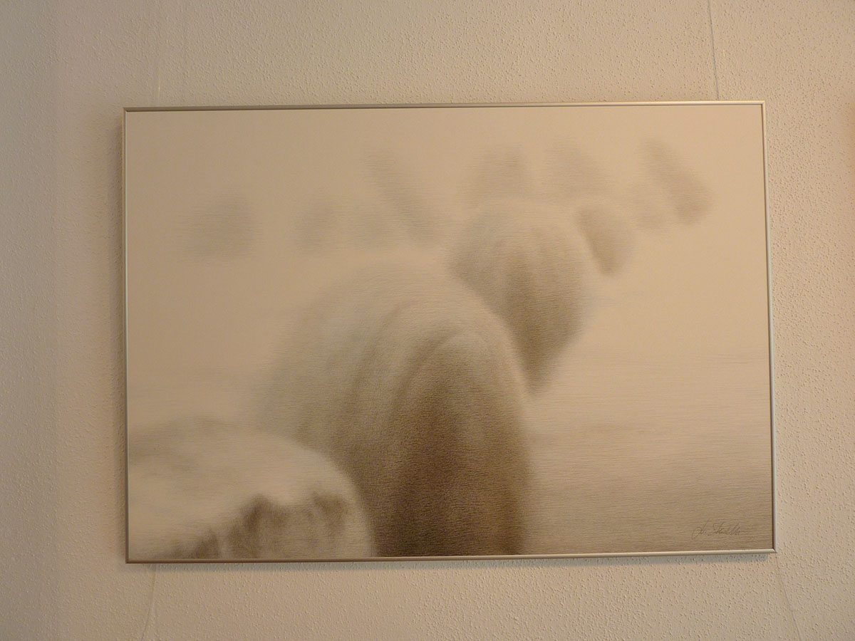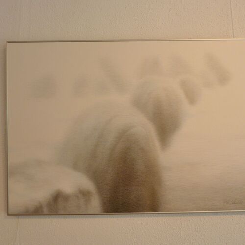 Bereits seit Stonehenge üben eigentümlich angeordnete Steine eine besondere Anziehung auf uns aus. Auch in der Fotografie sind sie ein gern gesehenes Motiv. Norbert Städele interpretiert dieses neu und legt den Fokus – im Gegensatz zur fotografischen Momentaufnahme – auf den Prozess, die Annäherung an das Werk durch die unzähligen Linien in Farbstift und Graphit. Die Ausstellung setzt diesen Zeugen längst vergangener Tage ein Denkmal. Hier gleicht kein Stein dem anderen. Stattdessen wird der Megalith als Individuum dargestellt, als Dichter seiner ganz eigenen, Äonen umspannenden Geschichte.
