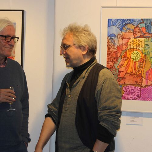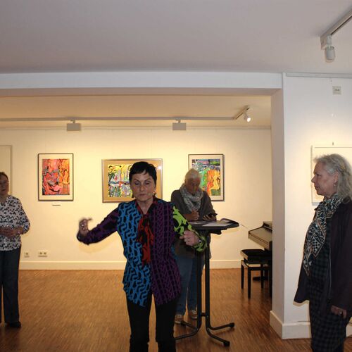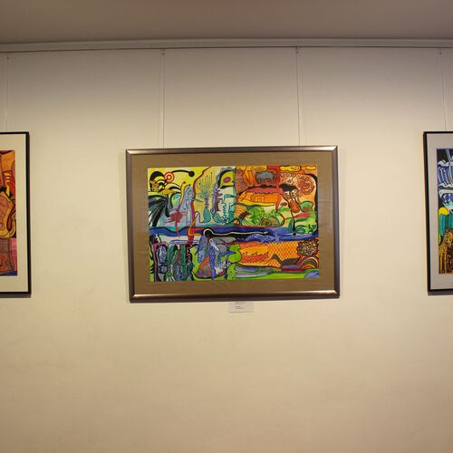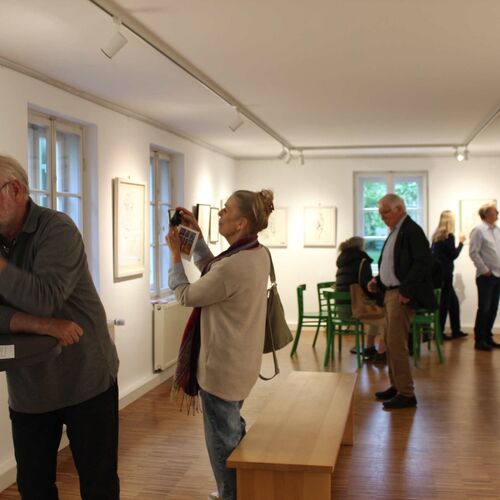 Die Ausstellung Szenario Feder-Farben zeigt ganz unterschiedliche Sichtweisen auf das Leben und die Theaterwelt. Fantasie-Gestalten, -Begegnungen und -Landschaften, Dramen, Tragödien und Komödien sowie auch Bühnenkünstler:innen: Laut, bunt und grell – aber auch leise, zart, schwarz und weiß.