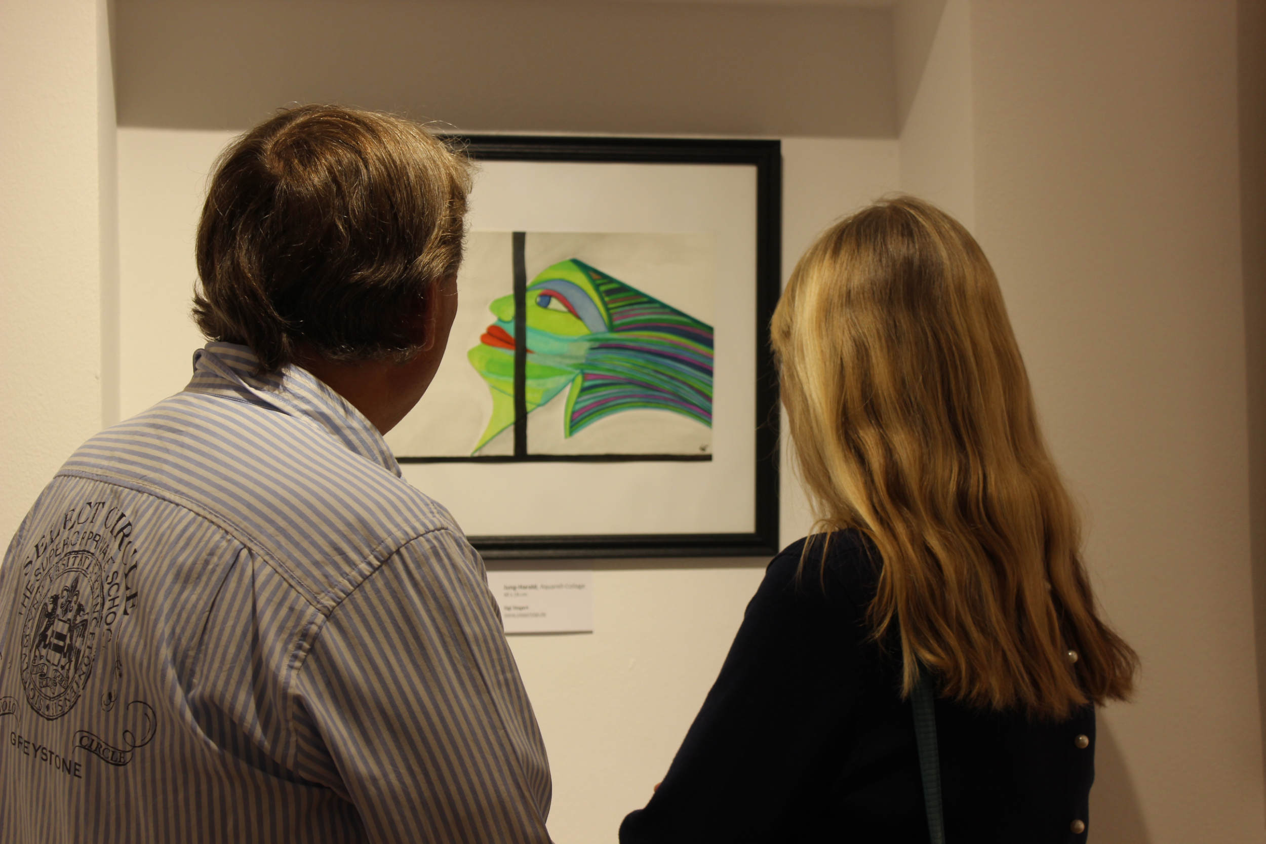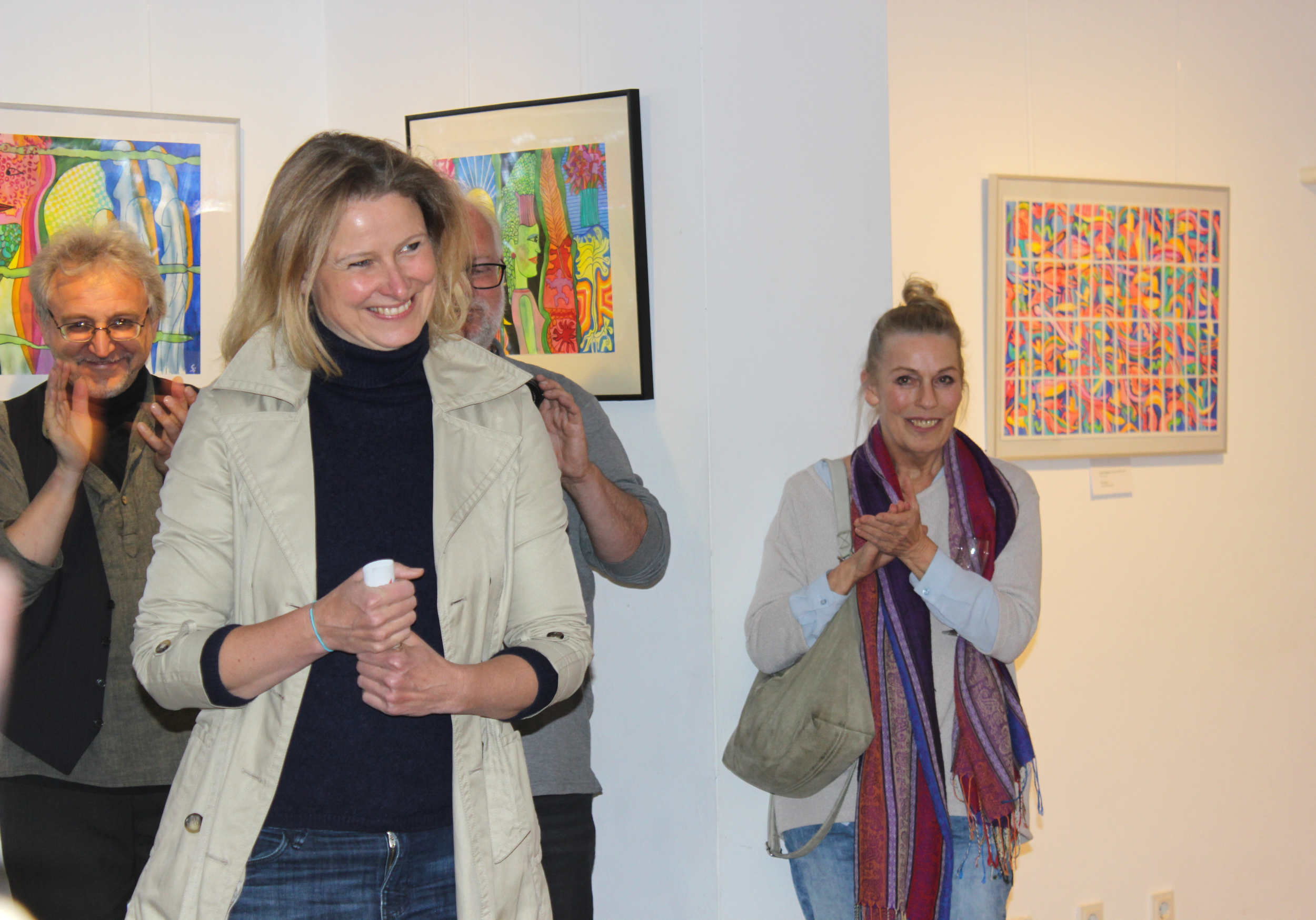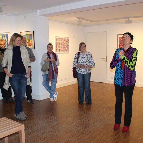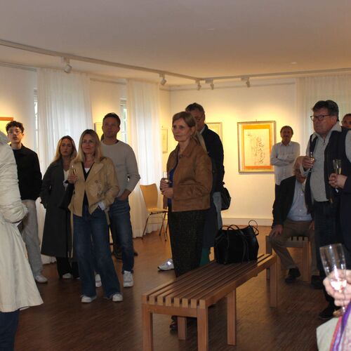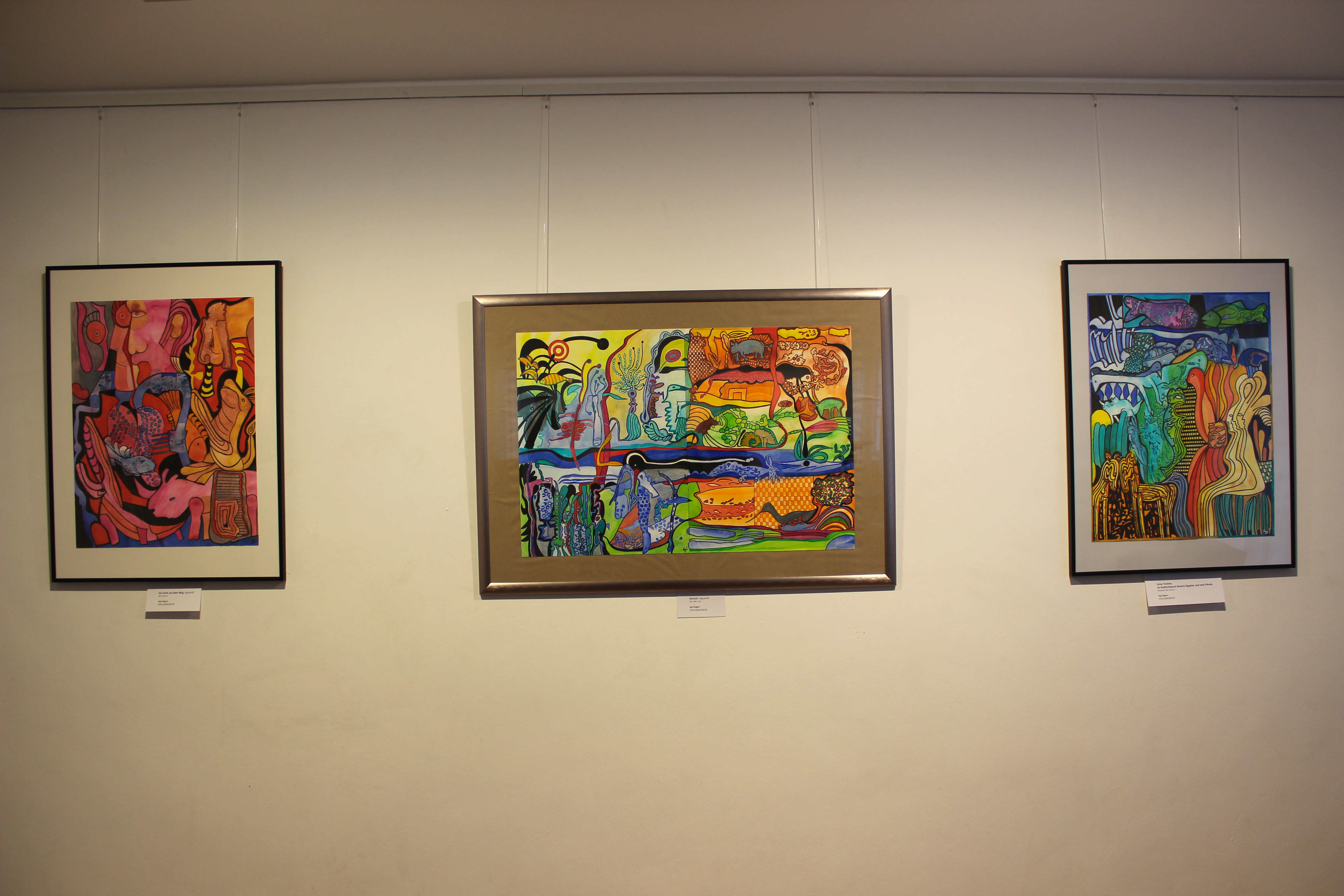 Die Ausstellung umfasst große Collagenformate mit farbigen Köpfen, Figuren und Eindrücken sowie einen variierenden Pinselduktus, der sich mit schwarzer Tusche in hauchdünnen Pinselstrichen aber auch in wilden und ungezähmten Federstrichen zeigt.