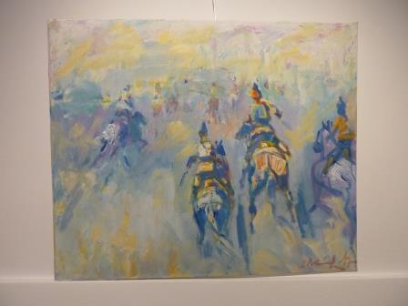 In seiner Kindheit nahm Lhagvasuren Gombo-Ichin selbst an Pferderennen (eine Disziplin des jährlichen Nationalfestes) teil und brachte mehrere Medaillen und Auszeichnungen nach Hause. Die schönen Erinnerungen dieser Zeit, sowie die Nähe zum Tier inspirieren den Maler und so entstehen einzigartige Öl- und Acrylgemälde in den Weiten der mongolischen Steppe.