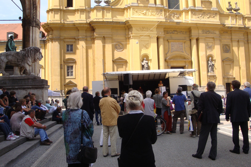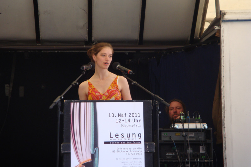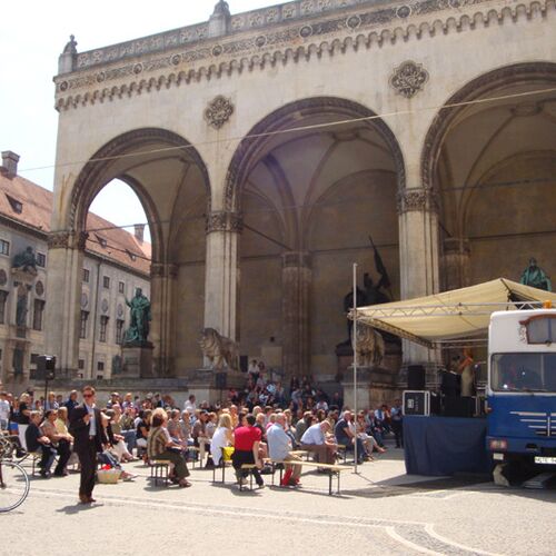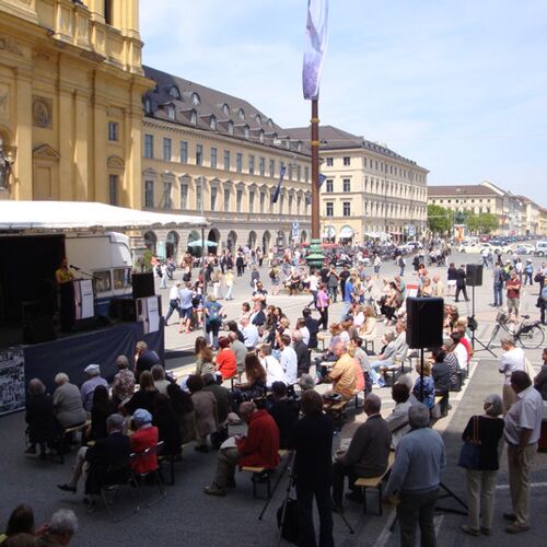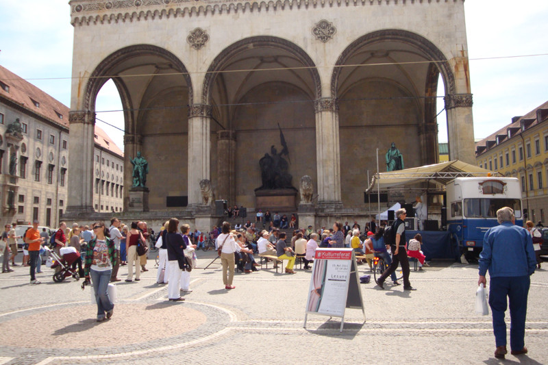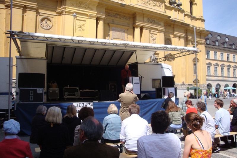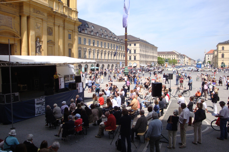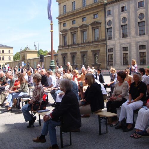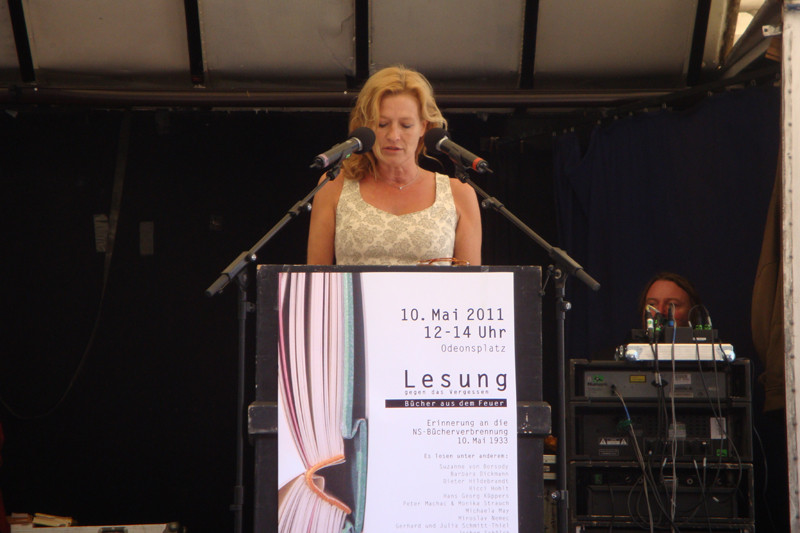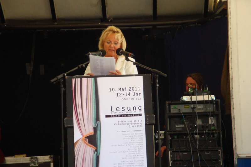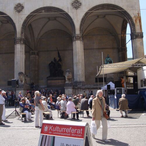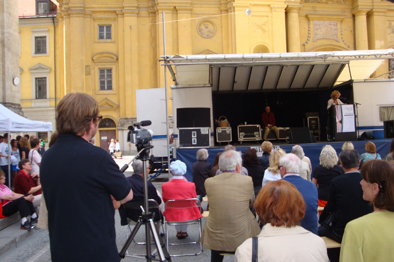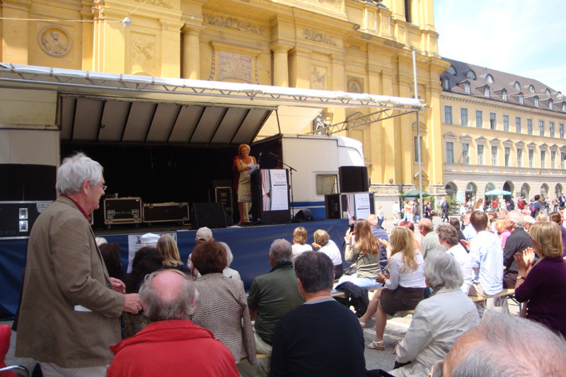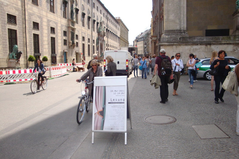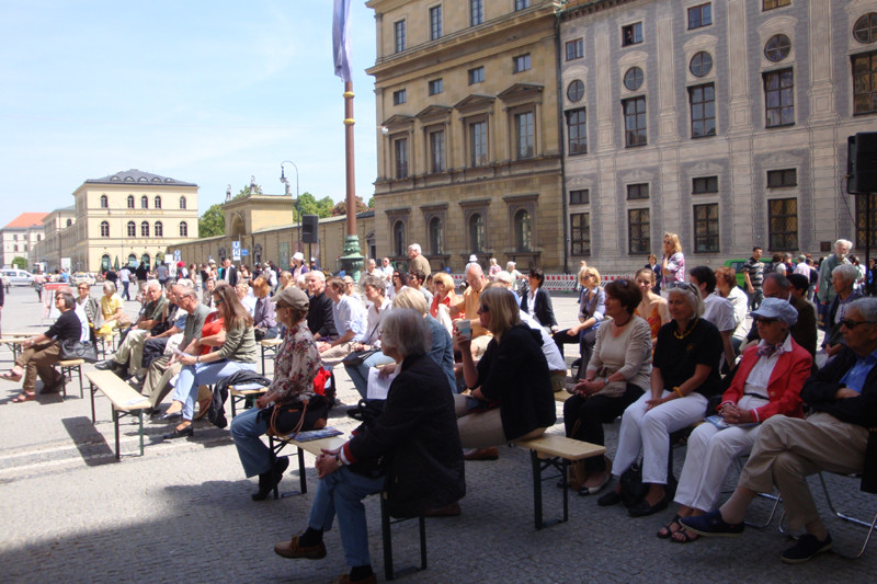 Am Odeonsplatz lesen unter anderem: Suzanne von Borsody, Barbara Dickmann, Dieter Hildebrandt, Ricci Hohlt, Hans Gorg Küppers, Peter Machac und Monika Strauch, Michaela May, Miroslav Nemec, Gerhard und Julia Schmitt-Thiel, Jochen Schölz, Claus von Wagner, Edith von Welser-Ude, Studierende der Otto-Falckenberg-Schule, der August-Everding-Akademie und Münchener Schulen.