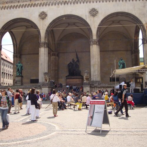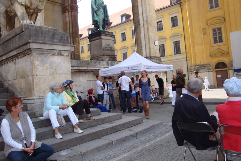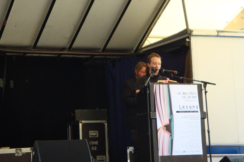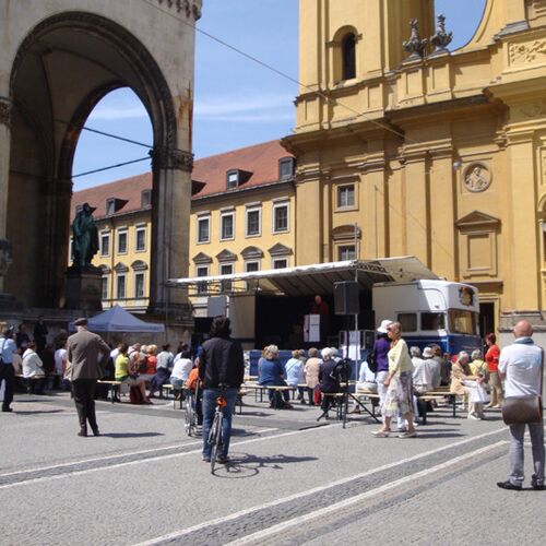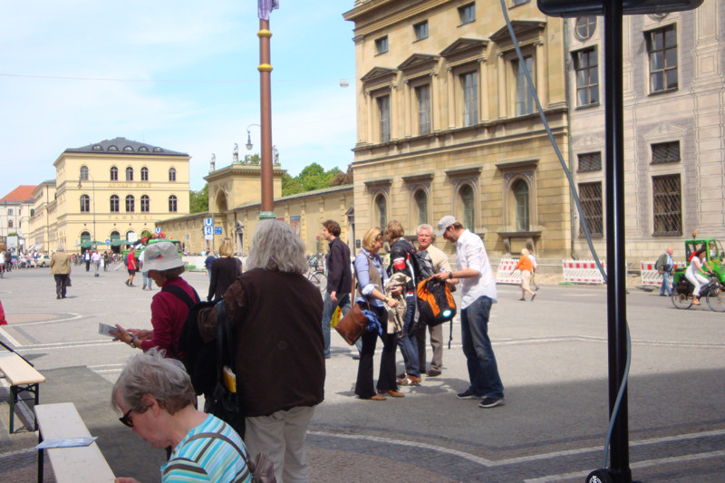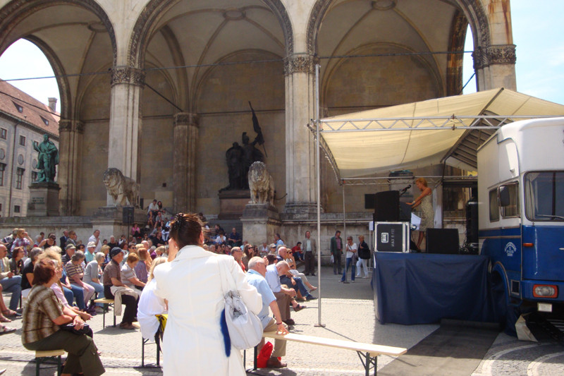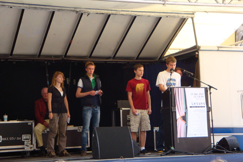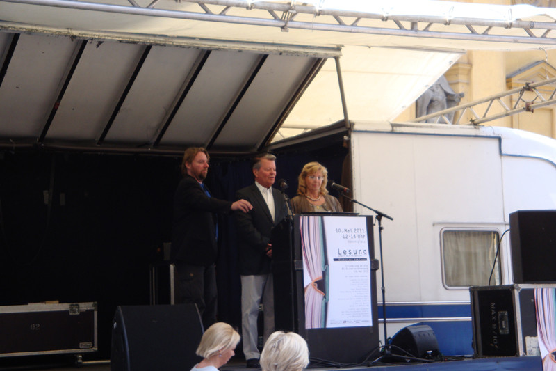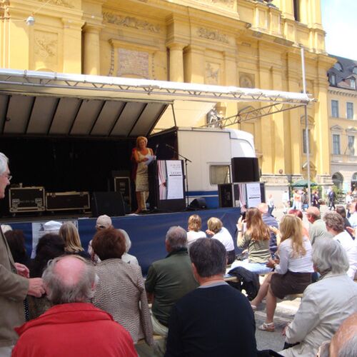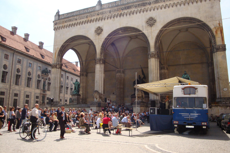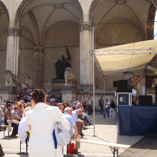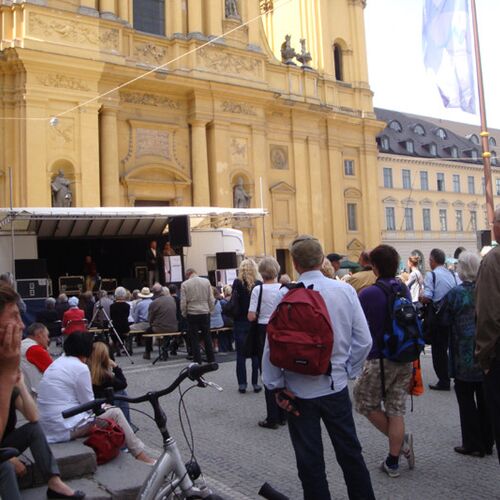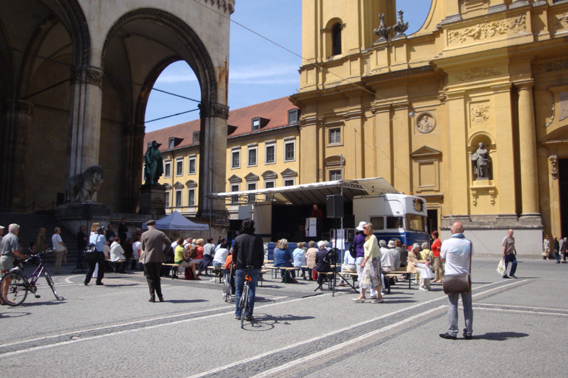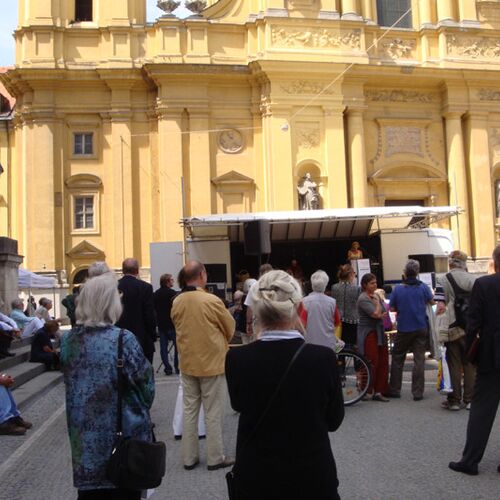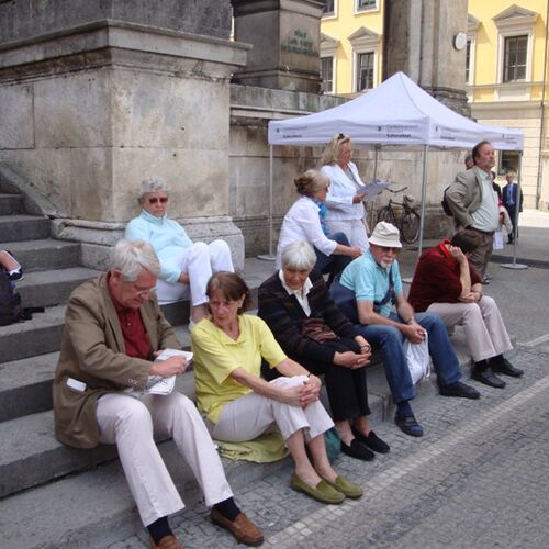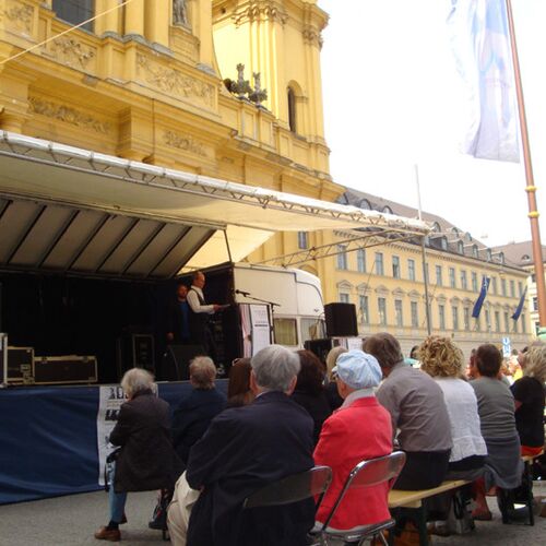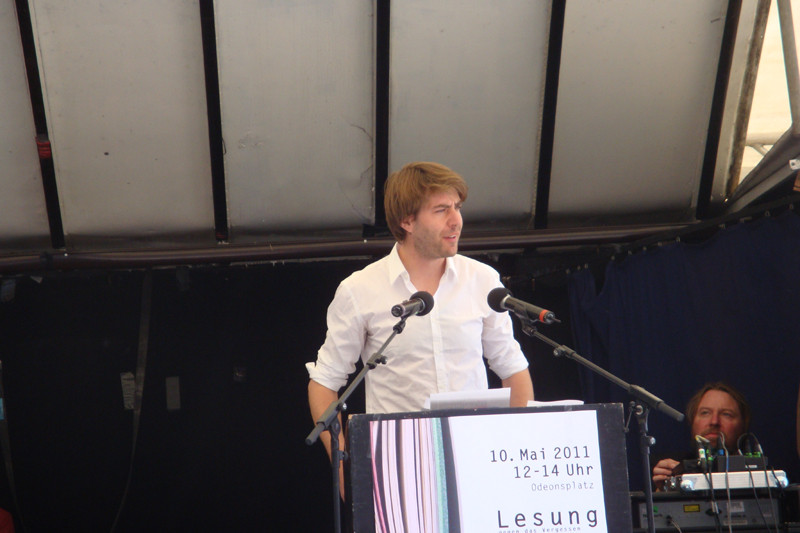 Am Odeonsplatz lesen unter anderem: Suzanne von Borsody, Barbara Dickmann, Dieter Hildebrandt, Ricci Hohlt, Hans Gorg Küppers, Peter Machac und Monika Strauch, Michaela May, Miroslav Nemec, Gerhard und Julia Schmitt-Thiel, Jochen Schölz, Claus von Wagner, Edith von Welser-Ude, Studierende der Otto-Falckenberg-Schule, der August-Everding-Akademie und Münchener Schulen.