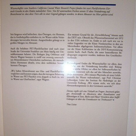 Zum Tag des Wassers beschäftig sich die Ausstellung mit diesen Fragen. Sie will aufklären und auch nachdenklich stimmen, mit informativen Texten, die in einer Gipscollage und Objektinstallation eingebunden sind. Sie sollen für mehr Transparenz im Dschungel der Informationen sorgen, sodass sich jeder eine eigene Meinung bilden kann.