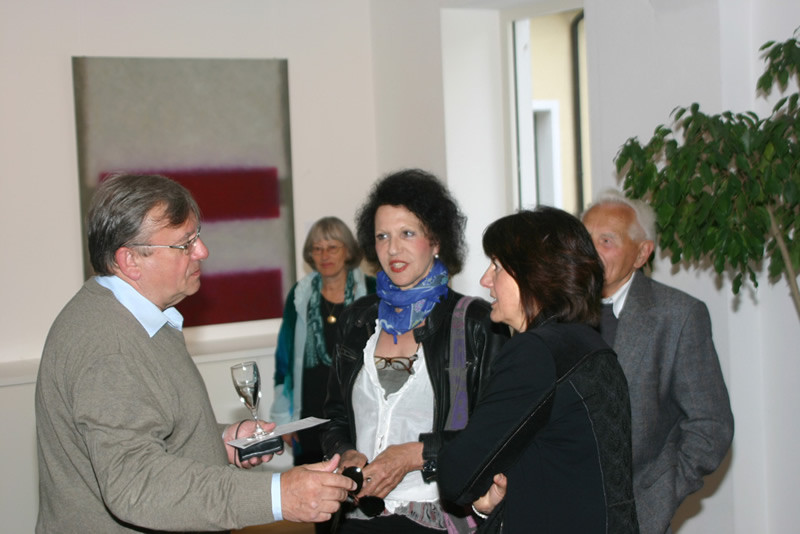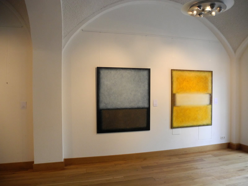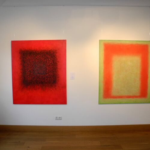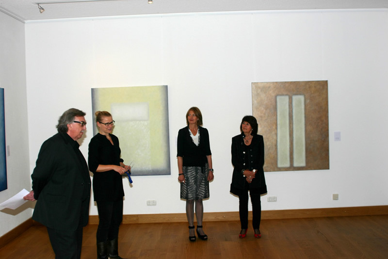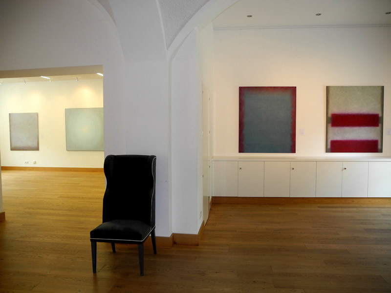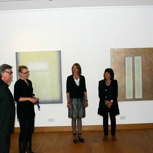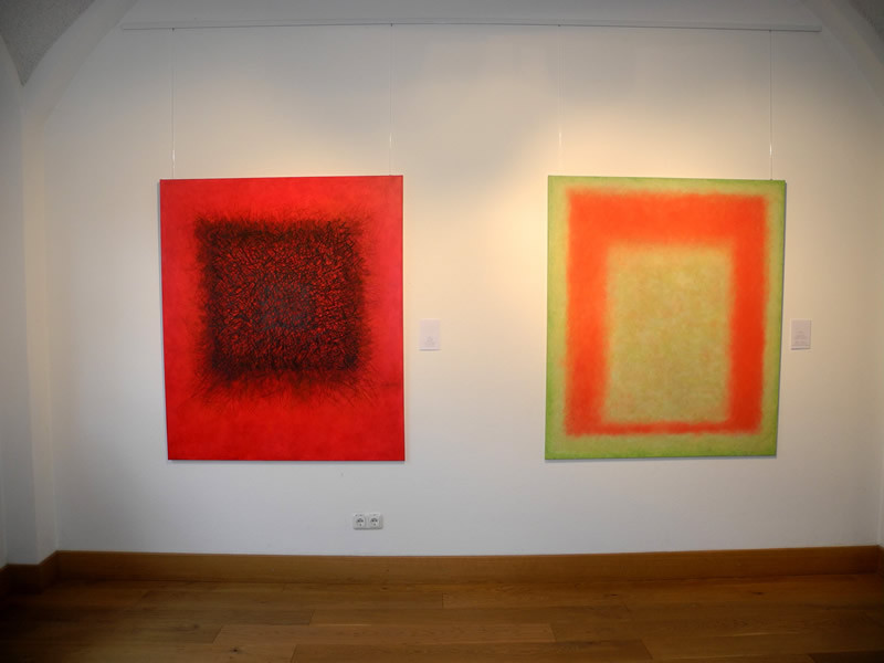 Auf Grundlage der Bauhauslehre entwickelt die Künstlerin Bildräume, in denen Linien und Flächen im Dialog mit der Farbe bildimmanente Welten erschaffen. Dabei hat der Betrachter, der sich ganz auf die Bilder einlassen kann, die Freiheit mit seinen spezifischen Erfahrungen und Stimmungen in die offene Malerei einzutauchen. Zarte Farben werden in vielen lasierenden Schichten übereinander getupft, sodass eine changierende, ja vibrierende Oberfläche entsteht, die sich unserer Wahrnehmung entzieht und in eine endlose Tiefe führt. Die Farbflächen beginnen ein Eigenleben, sprechen unsere Gefühle an und setzen jede Menge Assoziationen frei.