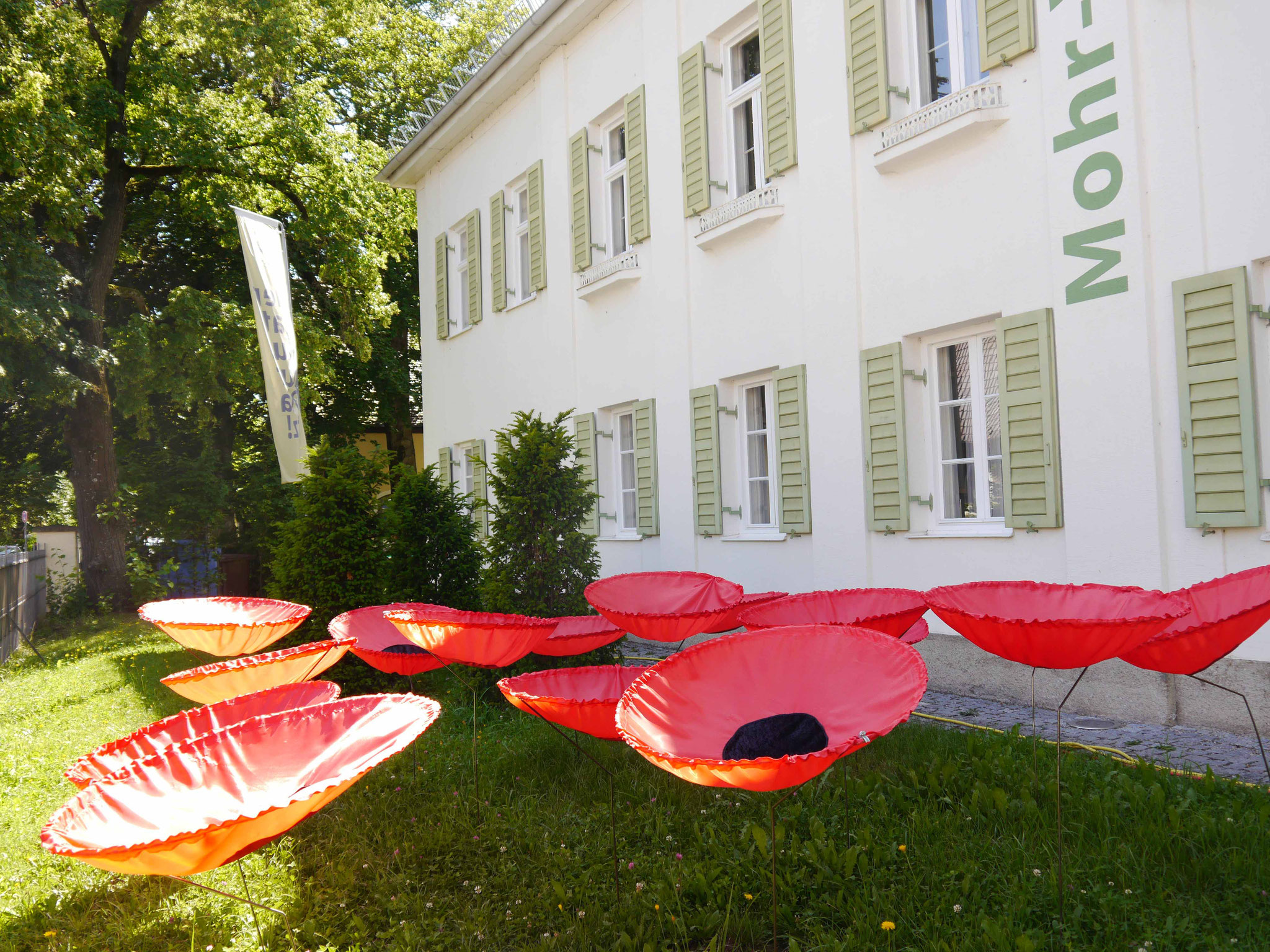 Von 1. bis 31. Juli werden rund 60 Blumen erneut im Park und Garten der Mohr-Villa zum Frieden mahnen. Denn gerade Freimann hatte während der beiden Weltkriege eine strategische Rolle für München. Die Bayerischen Geschützwerke, die Reichsbahn, SS-Kasernen und Soldatenstationierung prägten damals den Stadtteil und Erinnerungen lassen sich bis heute finden. Die Mohnblumen sind damit hier im Münchner Norden ein denkwürdiges und klares Zeichen gegen den Krieg und für den Frieden.