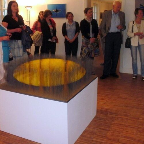 Der Meisterschüler, mehrfache Kunstpreisträger und international bekannte Objektkünstler Yoshiyuki Miura treibt es mit der “eigenen Sichtweise” wortwörtlich auf die Spitze – nicht nur bei seinen aufwändigen Großprojekten in aller Welt. Je nach Blickwinkel auf seine spektakulären Rauminstallationen verändert sich nicht nur die eigene Perspektive des Betrachters, sondern auch die Aussagekraft seiner irrationalen und bisweilen verwirrenden Objekte, die nicht greifbar erscheinen und doch sehr real in den sie umgebenden Raum einwirken. Miura spielt gekonnt mit Illusionen, optischen Täuschungen und vermischt real Fassbares und scheinbar doch nicht wirklich Vorhandenes zu einer ganz eigenen Kunstform, die begeistert und fasziniert. Selbst seine kleinen Objekte, z.B. aus exakt farbig akzentuierten Stahlstiften, lassen viele neue Dimensionen der Wahrnehmung zu.