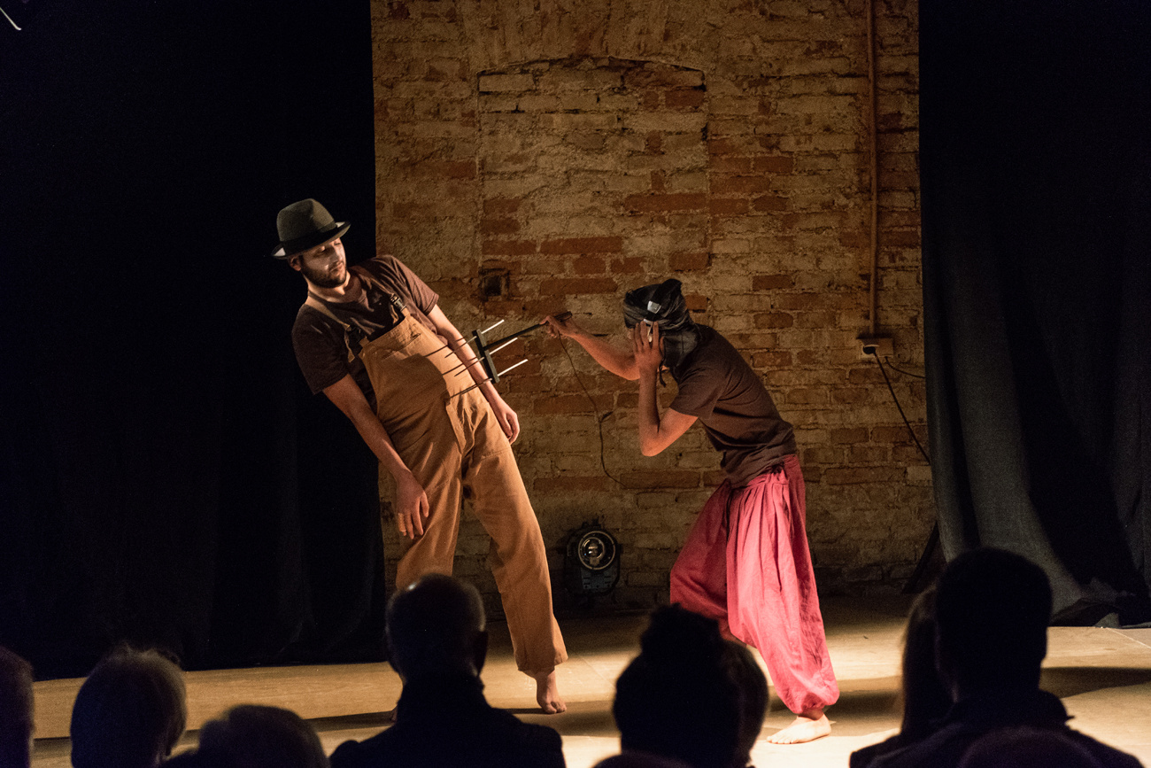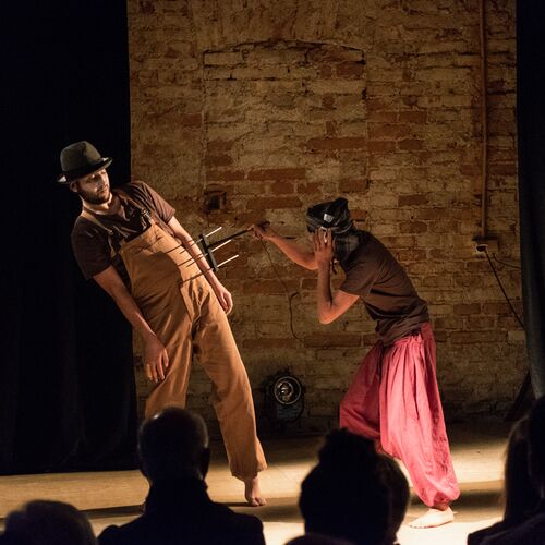 Das Theaterstück ist stummfilmähnlich, mit Texttafeln, Schattenbildern und getanzten, pantomimischen Elementen umgesetzt.