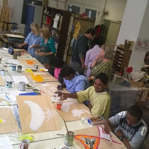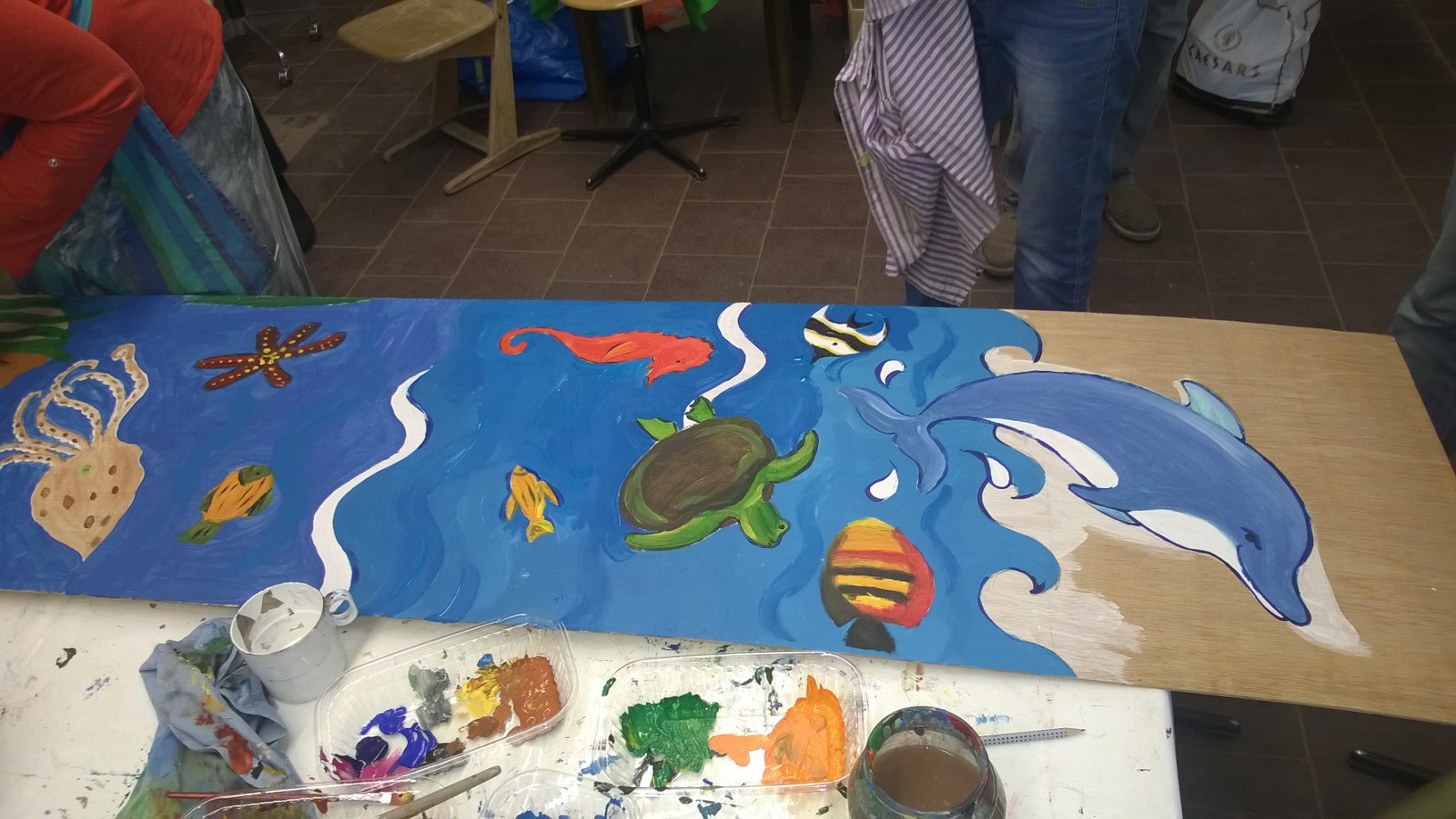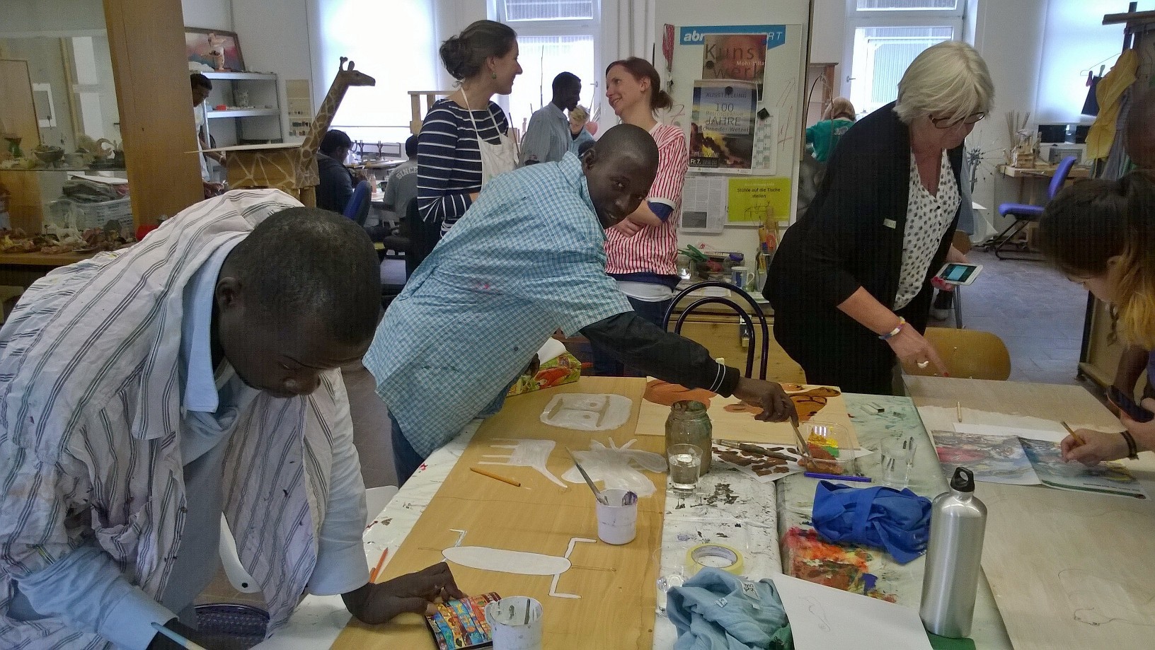 Geflüchtete Menschen und Ehrenamtliche gestalteten die Kinderspielecke im neuen Ankunftszentrum in Freimann