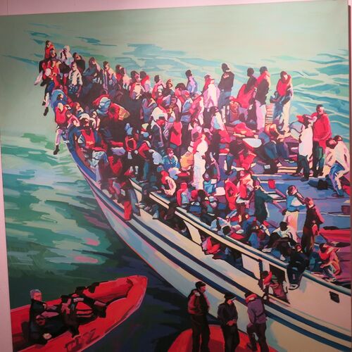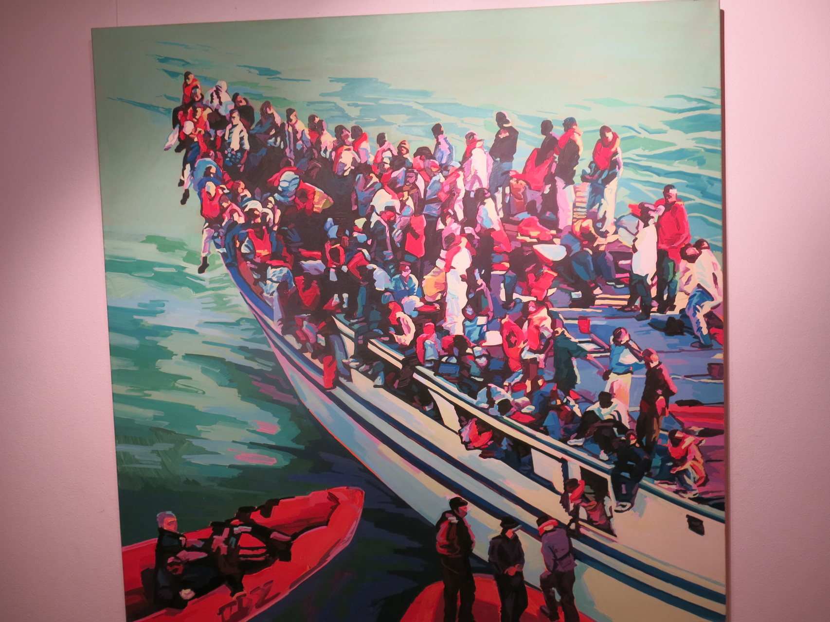 Anton Petz zeigte in seinen großformatigen Bildern Menschen bei dem waghalsigen Versuch, die europäischen Außengrenzen zu überwinden. Der Betrachter wird mit dem Schicksal der Flüchtenden direkt konfrontiert, ohne sich der Dramatik des Geschehens durch einen Mausklick oder dem nächsten Fernsehbild entziehen zu können. Der Charakter dieser Bilder, die oft in den Medien zu sehen sind, ändert sich durch die Malerei grundlegend.