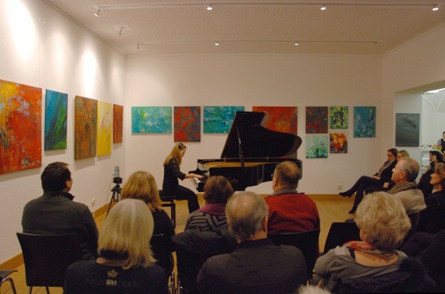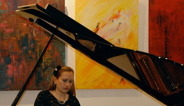 Sie sind mal geometrisch exakt gestaltet, mal intuitiv und fantasievoll. Gleichermaßen bewegen sich die Klavierwerke und Improvisationen von Cornelia Malecki frei zwischen verschiedenen Musikstilen. Sie sind sowohl rhythmisch ausdrucksstark als auch melodisch einprägsam. Malerei und Musik verbinden sich zu einem spannungsreichen Zusammenspiel. Auge und Ohr lassen erleben wie sich Malerei und Musik gegenseitig ergänzen und beflügeln. Das Vernissage-Konzert „PALETTE UND PIANO“ beginnt um 20 Uhr - eine Symbiose zwischen Acryl-Malerei und Klaviermusik.