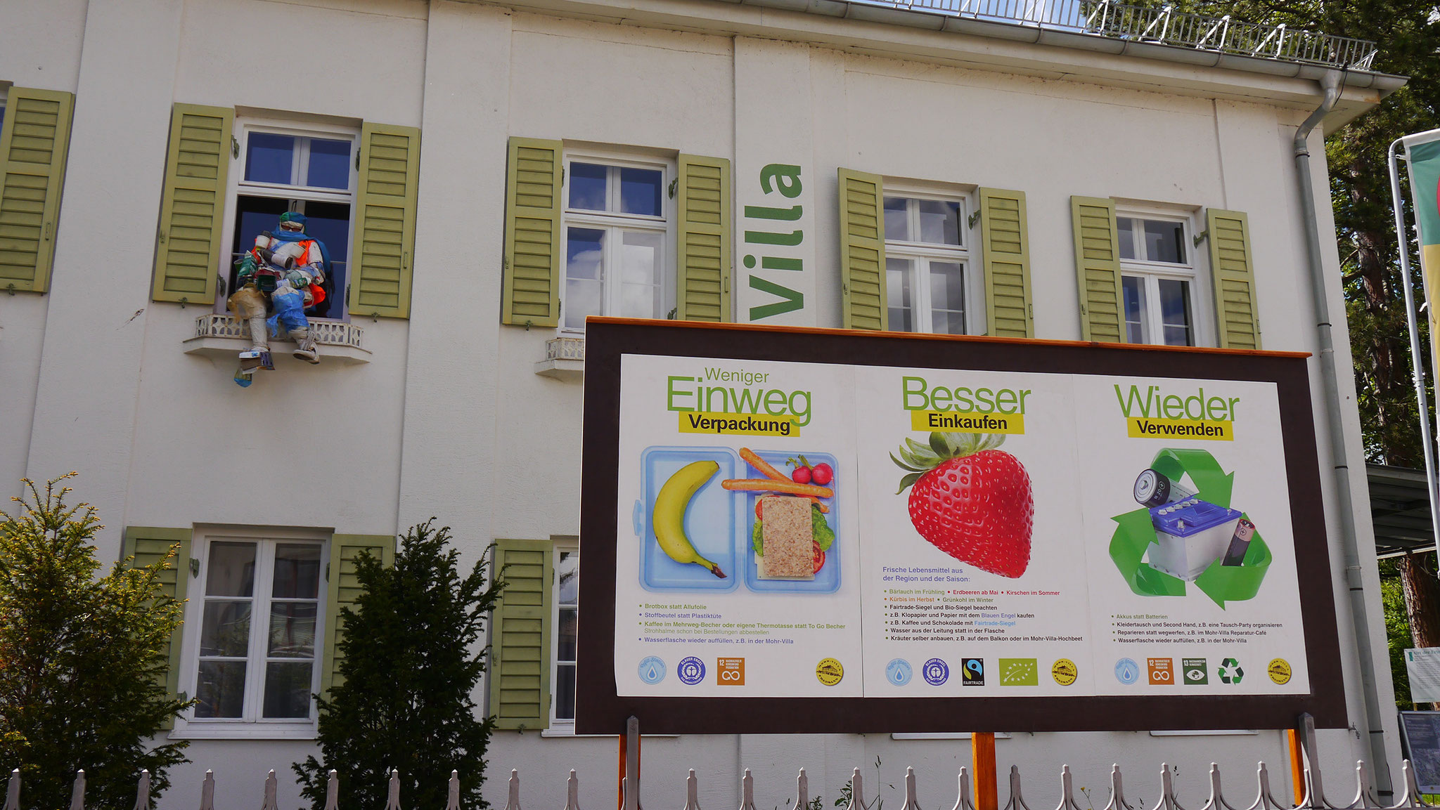 Der diesjährige „Earth Day“ soll Anlass für einen ganzen Aktionsmonat zum Thema ‚Zero Waste‘ der Mohr-Villa werden. Bei der Outdoor-Aktion wird ein Mann aus Müll auf unserem Gelände sitzen und neugierige Blicke auf sich ziehen. Darüber hinaus informieren Plakate über die Möglichkeiten des Ressourcenschutzes.