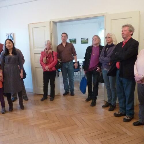 Hongyun He malt mit Ölfarbe auf Leinwand und mit Acryl auf rohe Holzplatten. Sie studierte an der Kunstakademie von Hunan in China. Nach ihrer Ausbildung arbeitete sie als Kunstpädagogin in China. 2007 schloss sie den Master Studiengang „Integrated Design“ an der FH Anhalt ab. 2009 gründete sie den Verein Interkulturelles Kinder Atelier. Seit 2011 wohnt sie in Fröttmaning, direkt an der Heide, die ihr die Inspiration für ihre Kunstwerke gibt.