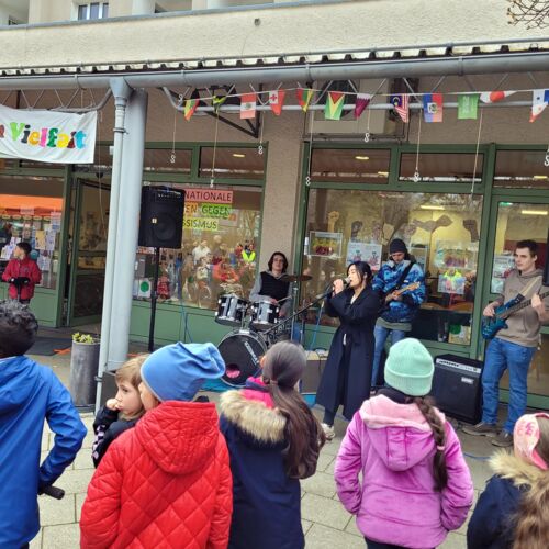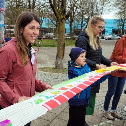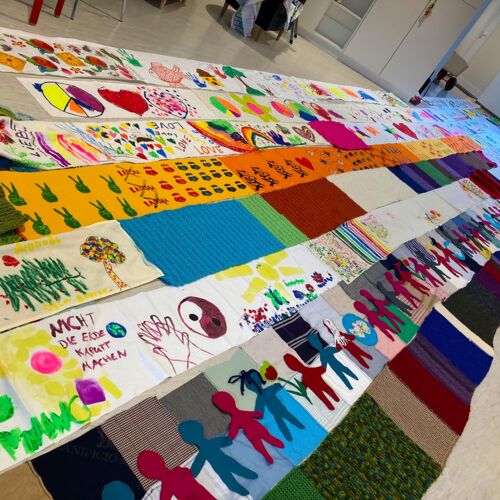Dieses Jahr entstand ein langer bunter Schal als Symbol der Vielfalt und Toleranz, der uns alle verbindet. Teilstücke wurden dabei in den Einrichtungen gefertigt und schließlich bei einem Stadtteilfest zu einem langen Schal zusammengefügt.
