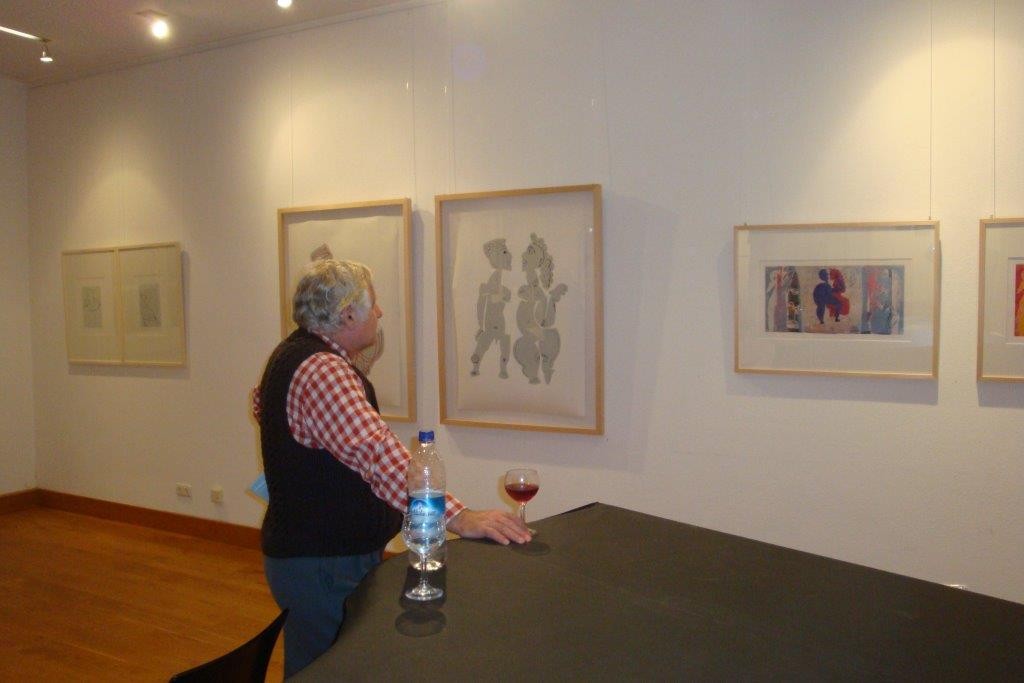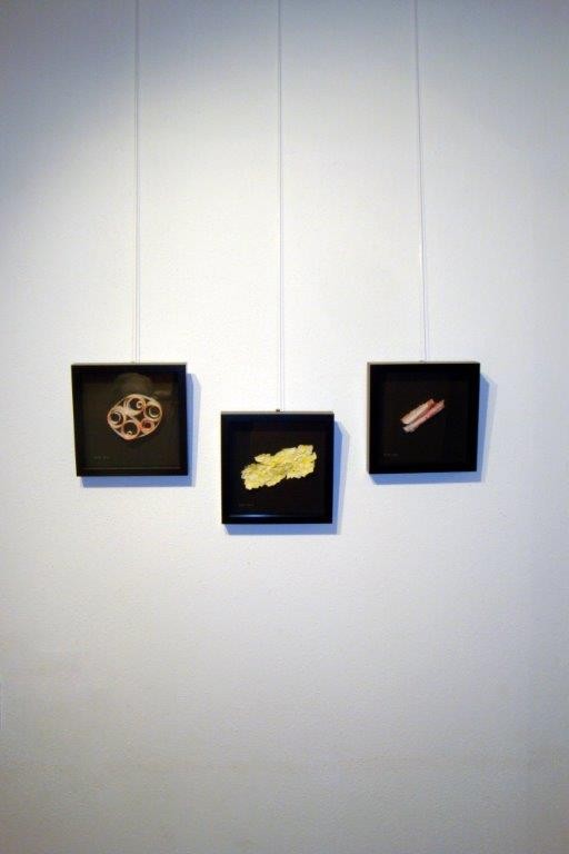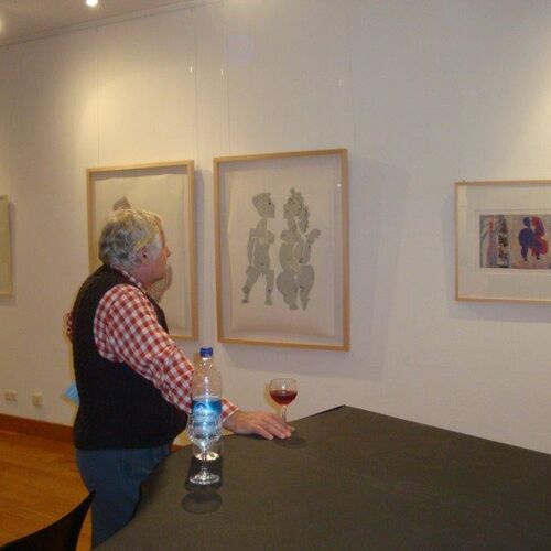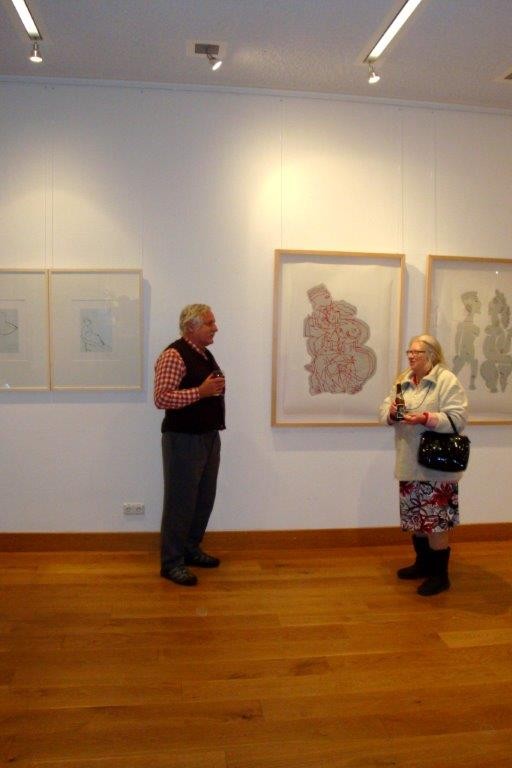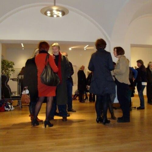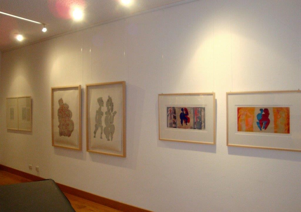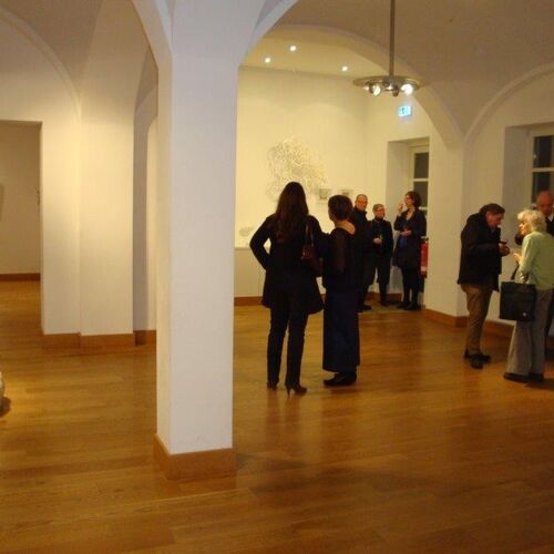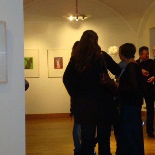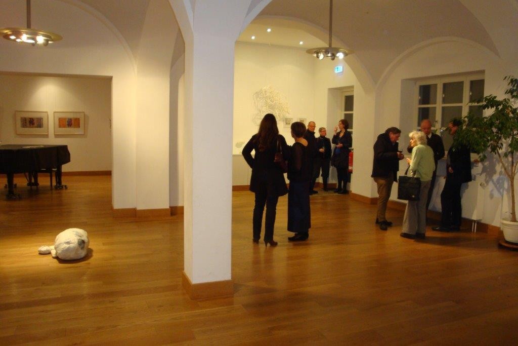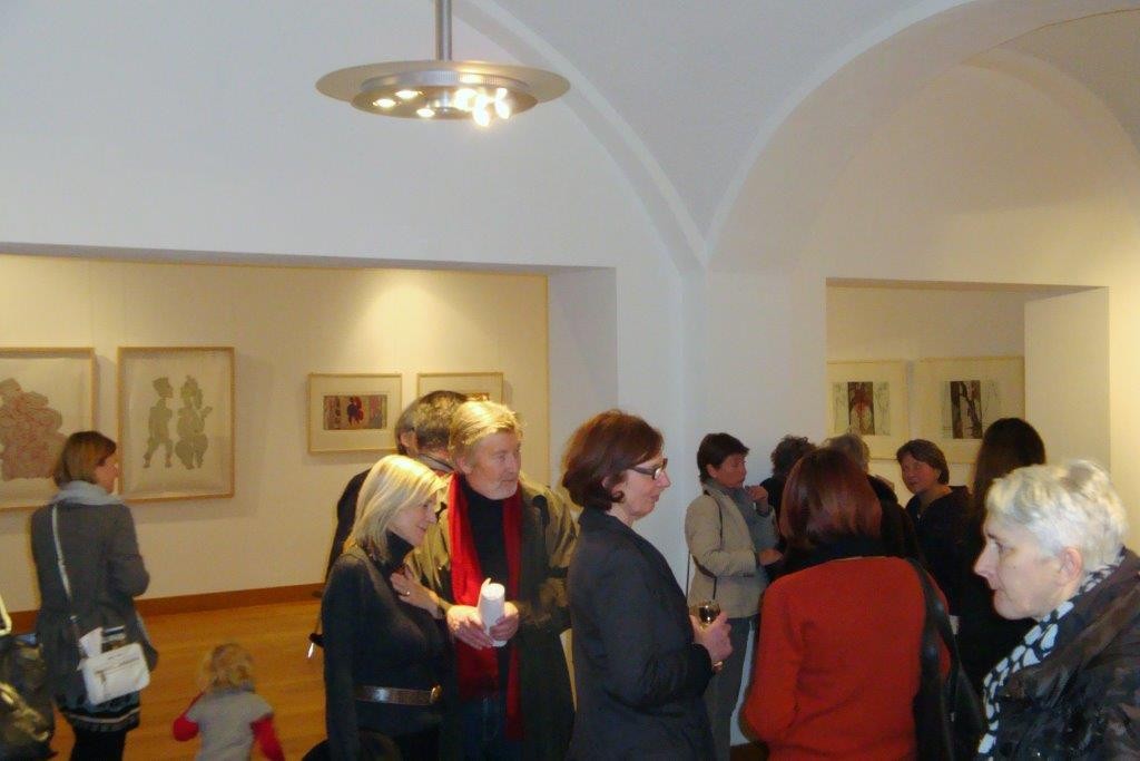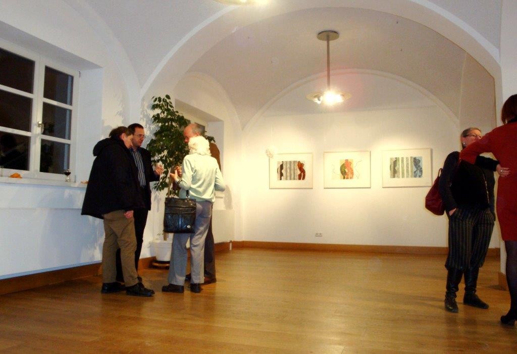 Gisela Birkenthal (Holzschnitt) und Barbara Kleiber-Wurm (Papierobjekte) spielen, formen, zeichnen, schnitzen und drucken mit diesen Begriffen.