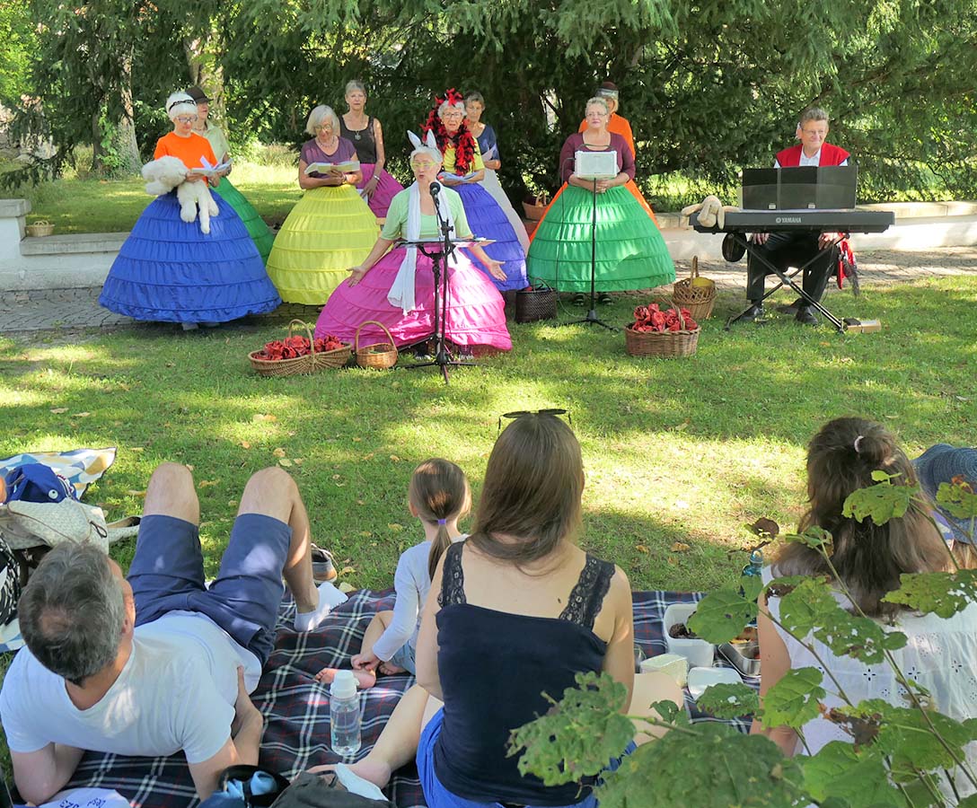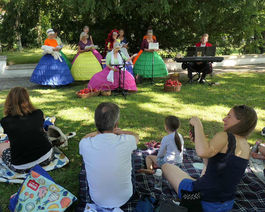 Schöne und bekannte alte Märchen, vorgetragen und musikalisch garniert mit Kinder- und Volksliedern von „Der DamenCHOR“ und Rose Bihler Shah, für die Kleinen und die Großen zum Zuhören und Mitsingen.