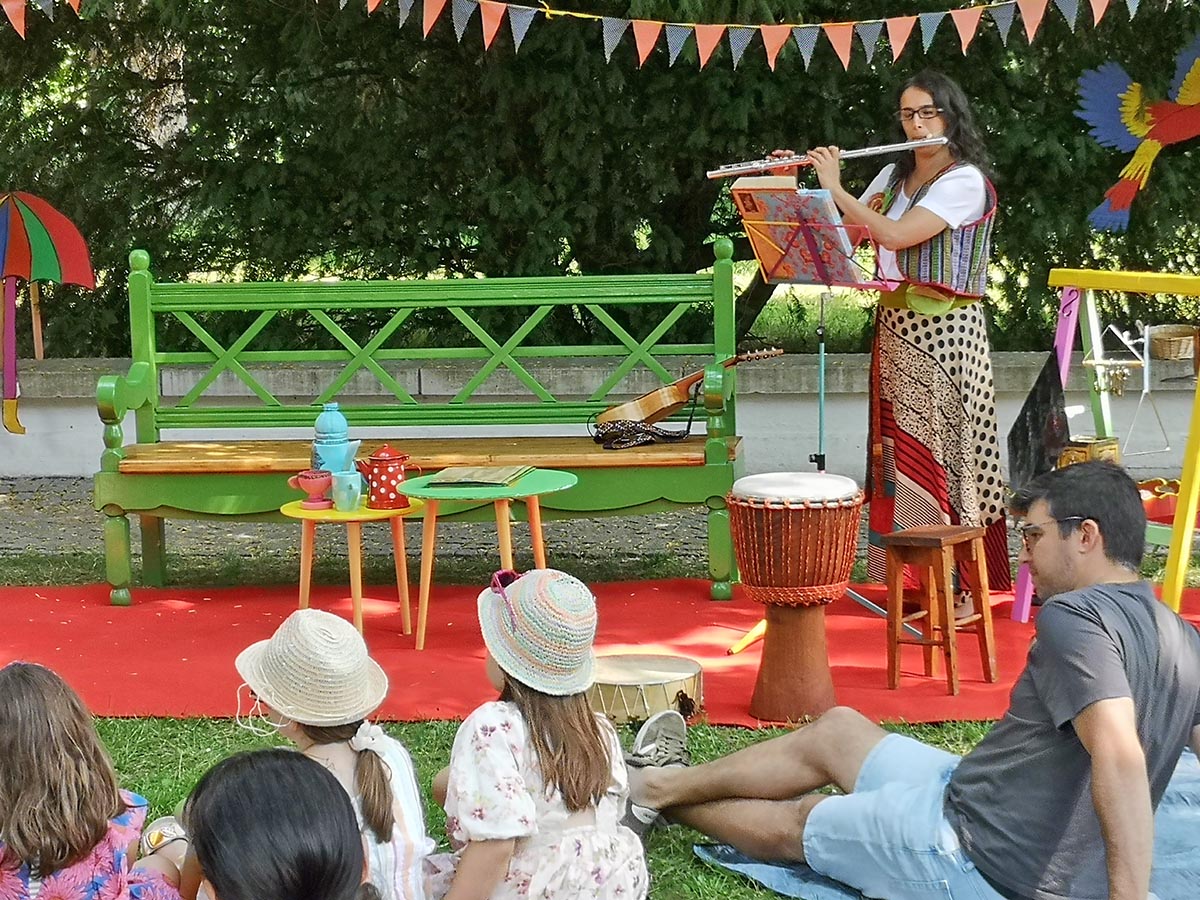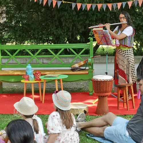 Klavier, Querflöte, Gitarre, Gesang und verschiedenste Percussions-Instrumente bringen dem Publikum und den Kindern tolle Lieder, neue Melodien, Klänge, Rhythmen und Sprachen aus aller Welt näher. Das alles ist in eine interaktive Geschichte eingebettet, bei der die Kinder auch selbst mitmachen und miterleben können.