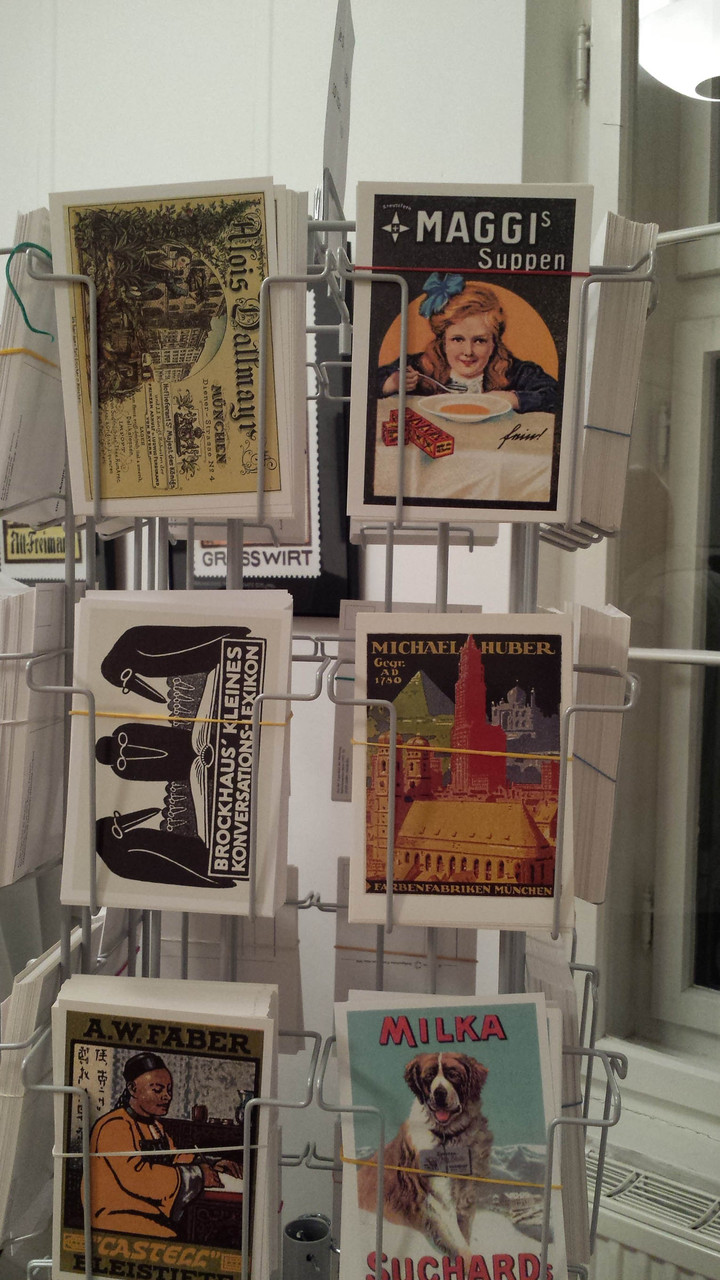 Der Schwerpunkt der rund 40 Bilder machen Reklamemarken Münchner Firmen aus. München ist ja weltweit die Hochburg der Reklamemarken!
