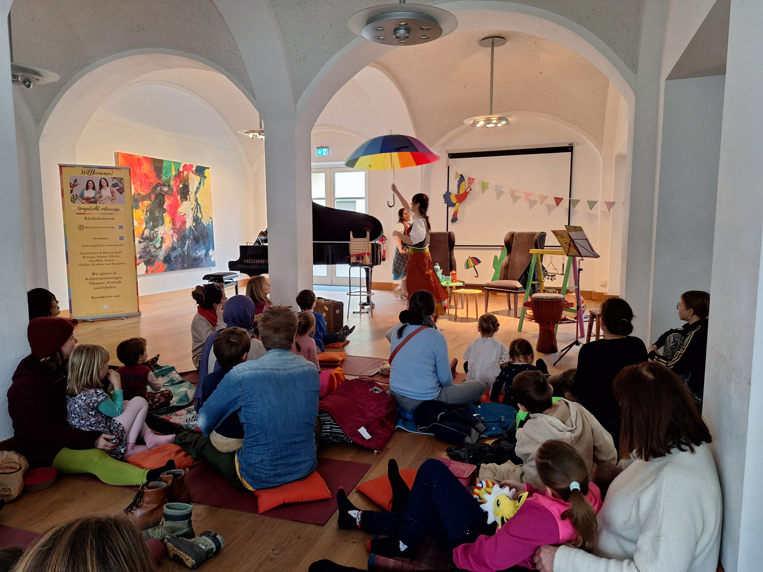 In der musikalischen Reise „Umgedreht unterwegs um die Welt“ begleitet das Publikum die abenteuerliche Geschichte von Monica, die rund um den Globus gereist ist und zahlreiche Briefe an ihre Freundin Karina geschickt hat. Doch Karina hat die Briefe verloren, und als Monica nach Hause zurückkehrt, entfaltet sich eine spannende und lehrreiche Erzählung.
