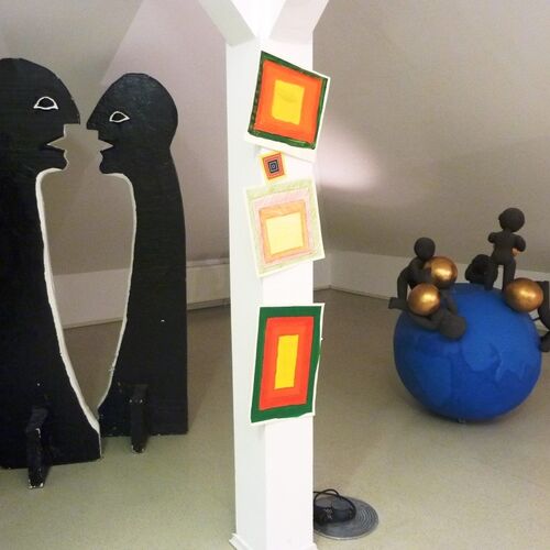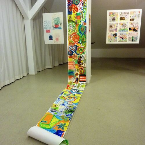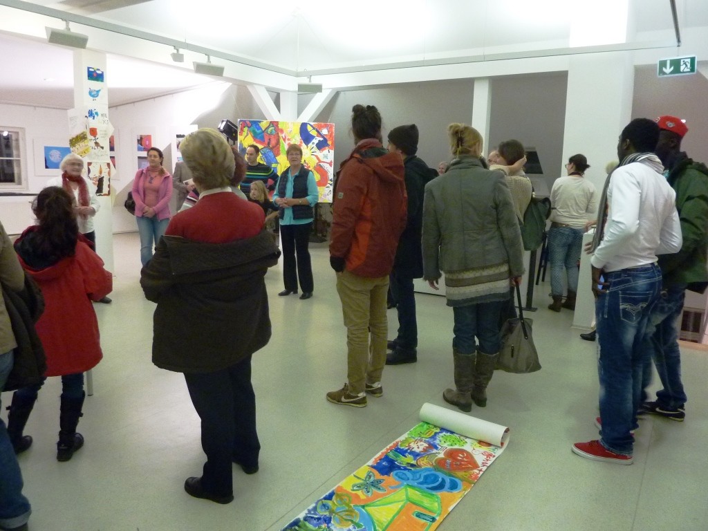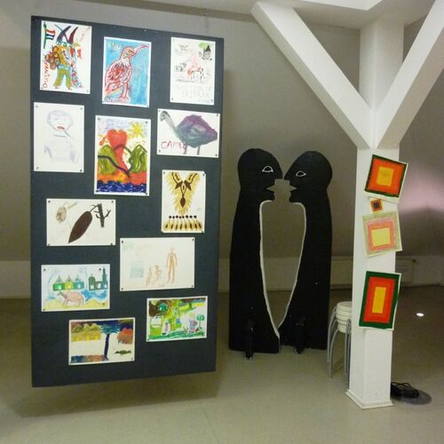 Unter der Rubrik „Mohr-Villa trifft Flüchtlinge“ veranstalten die Kunsttherapeutin Elena Deidenbach und die Ehrenamtliche Serena Widmann einmal im Monat eine Kunstwerkstatt mit Flüchtlingen des Camp (ehem. Bayernkaserne). Die Idee dabei ist, den Menschen, die oftmals eine traumatisierende Flucht hinter sich haben, durch das Malen ein Stück Normalität zurück zu geben. Die Mohr-Villa präsentiert die Ergebnisse wie auch in den vorangegangenen Jahren in einer Werkschau einer breiten Öffentlichkeit. Hinzu gesellen sich Fotos und Skizzen von dem Street-Art-Projekt „Ein Bild als Brücke“, das am Wochenende 19. bis 21. September am Camp stattfand: Gemeinsam mit der Münchner Künstlerin tooz und mit Hilfe von Studentinnen des Collegium Oecumenicum bemalte eine Gruppe von Flüchtlingen hier den Eingangsbereich.