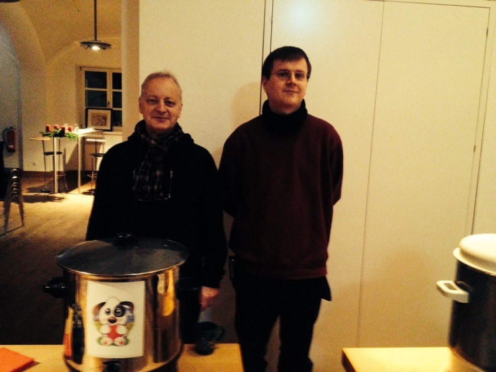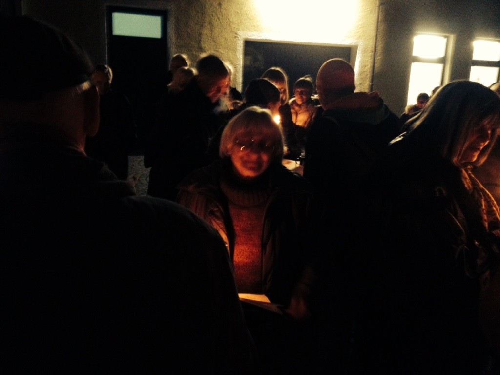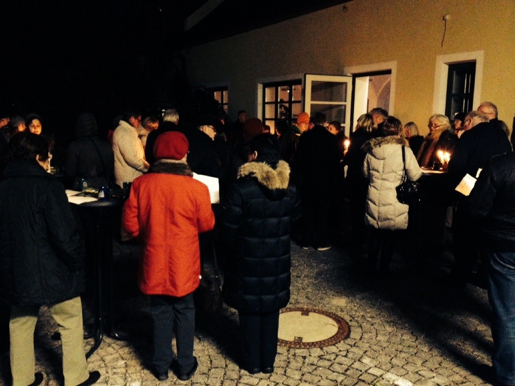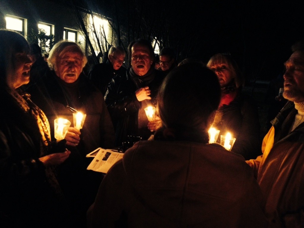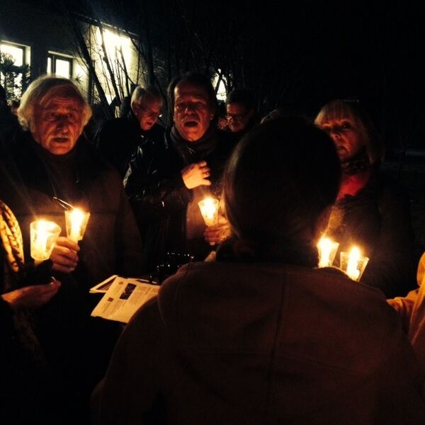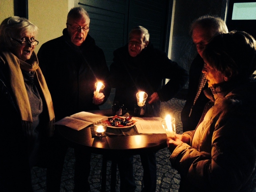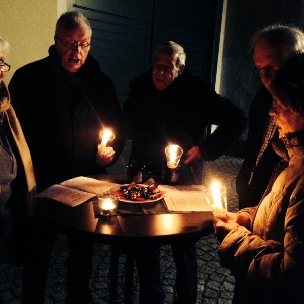 Anschließend werden gemeinsam Lieder zur Einstimmung in die Weihnachtszeit im Hof gesungen.