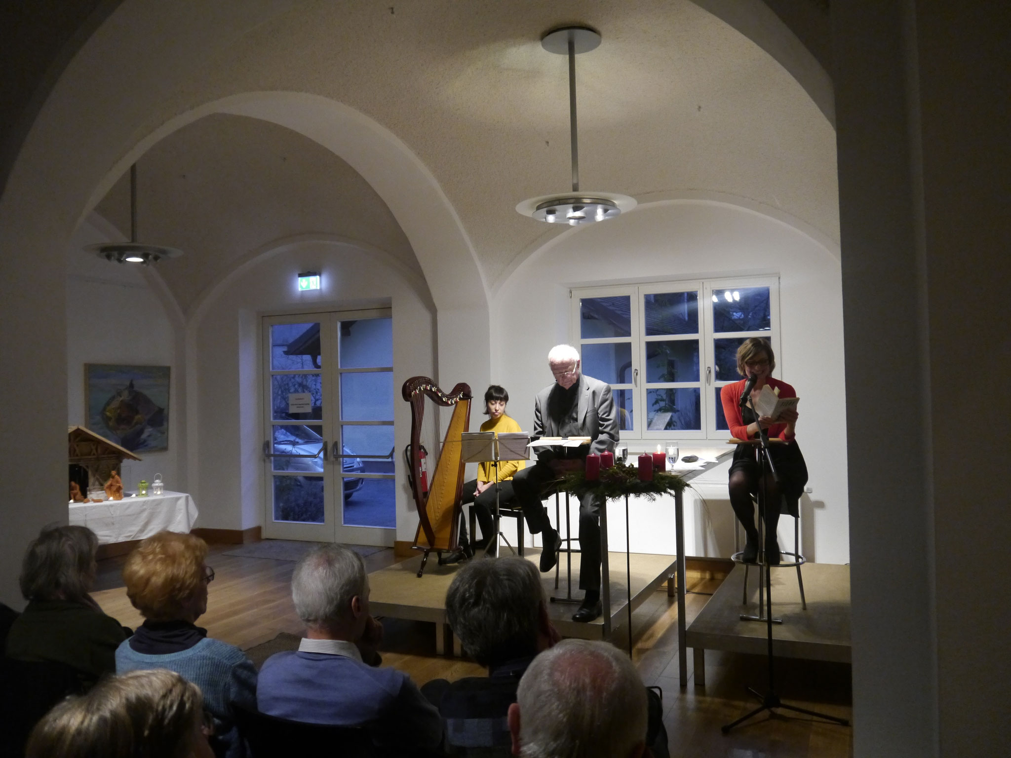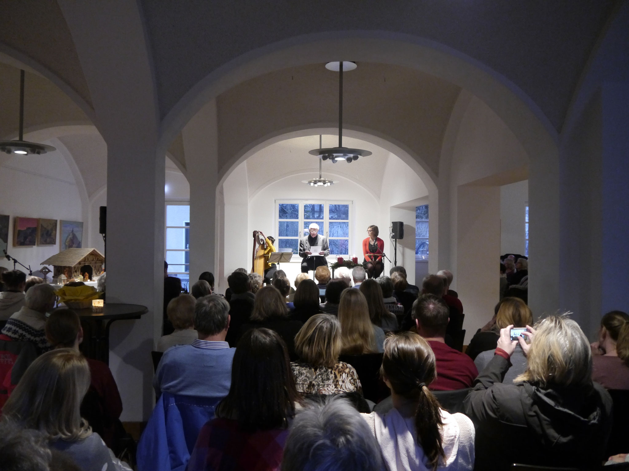 Am Sonntag, dem 1. Advent, ist es wieder soweit: im Gewölbesaal wird am Adventskranz die erste Kerze entzündet. Im Schimmer dieser Kerze und mit dem Klang der Harfe beginnt die Lesung. Erwartungsvolle Stimmung breitet sich aus. Wie jedes Jahr eröffnet so die Mohr-Villa ihr Weihnachtsprogramm.