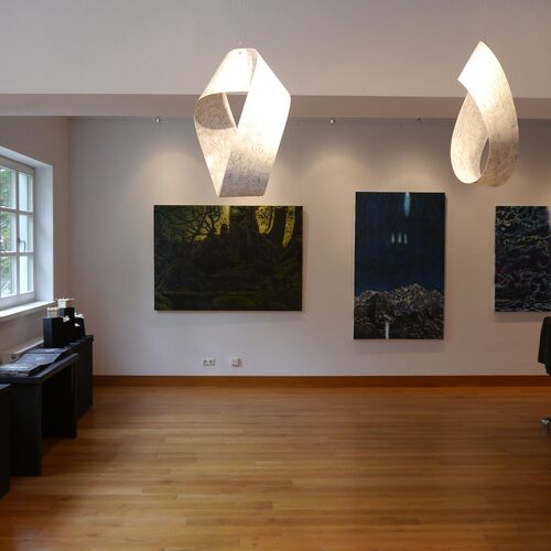So spürt man immer etwas Hybridhaftes beim Betrachten der Arbeiten, denen Architekturen aus Figuren, Apparaten, Gebäuden und Landschaften, Wälder und Berge als Repertoire dienen. Jedoch ist hier nichts nur gegenständlich, nichts nur Abstraktion, nichts todernst, nichts aber auch nur ironisch.