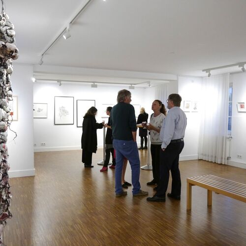 Eva-Maria Bischof-Kaupp gibt einen Einblick in ihr zeichnerisches Schaffen, für das sensible Bleistiftzeichnungen sowie kraftvolle Tuschelinien typisch sind. Das Papier, auf dem zarte Mohnblüten und Akte gezeichnet sind, ist dabei entscheidend für ihre Werke: Papier wird benäht, geknittert, geprägt oder auf andere Weise verändert und unterstreicht so den taktilen und experimentellen Charakter der Zeichnungen. Das Spiel mit dem Material erlaubt Bischof-Kaupp Ausflüge ins Dreidimensionale, auch in Kombination mit Draht. Neben Bleistift- und Tuschearbeiten sind auch Radierungen Teil ihrer Arbeiten.