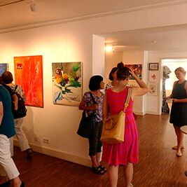 Aussteller*innen sind hierbei die Kursteilnehmer*innen unterschiedlichsten Alters. So zeigen sich Werke von Kindern und Erwachsenen – naiv bis professionell. Und auch der Ende 2016 verstorbenen Leiterin der Kunstwerkstatt Elena Deidenbach ist ein Teil der Ausstellung gewidmet.