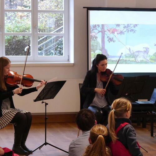 any Kammerlander, Alexa Beattie und Marianne Beleaeva erzählen musikalisch die Geschichte des mutigen Jungen Peter. Mit bunten Bildern stellen sie dabei auch verschiedene Orchesterinstrumente spielerisch vor. Und der Spaß kommt natürlich nicht zu kurz: Am Ende wird gemeinsam gesungen und getanzt.