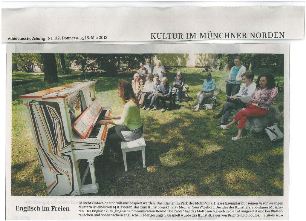 Initiatoren von »Play me I’m Yours« in Deutschland sind Andreas Wagner und Isabel Melendez Alba, die Gründerin des gemeinnützigen Vereins Musik mit Kindern e. V., Schirmherr ist Oberbürgermeister Christian Ude. Supporter sind Künstler wie der Grafikdesigner Mirko Borsche, der Bildhauer Josef A. Henselmann, der Graffiti-Künstler z-rok sowie die Artists for Kids und das Kulturreferat der Landeshauptstadt München, vertreten durch Dr. Hans-Georg Küppers.