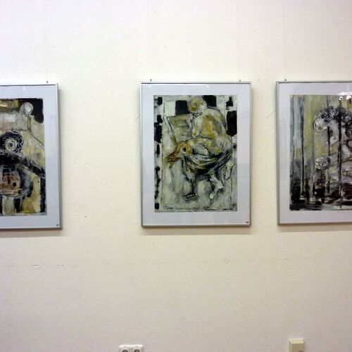 In Renate Grossers Kunst entstehen Serien, die wie kleine Theaterszenen wirken und den Betrachtenden viel Spielraum für eigene Interpretationen lassen. Es sind phantasievolle, skurrile, erzählerische Bilder in Acryl / Mischtechnik.