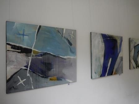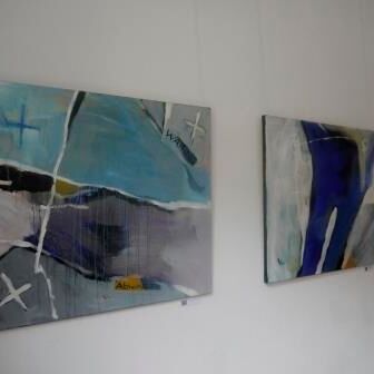 Die abstrakten Kompositionen mit Farbstreifen und -tupfen, mit Nuancen und Schattierungen, zuweilen begleitet von begrifflichen Wörtern, verorten sich in räumliche, zeitliche und erzählerische Zusammenhänge. Sie regen an, stoßen auf, werfen um. Sie bieten sich an als Räume für Empfindungen.