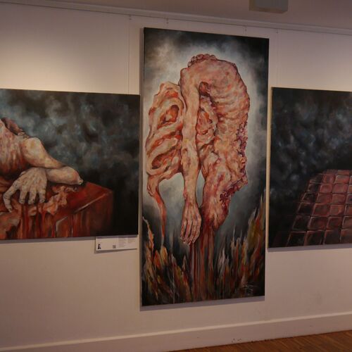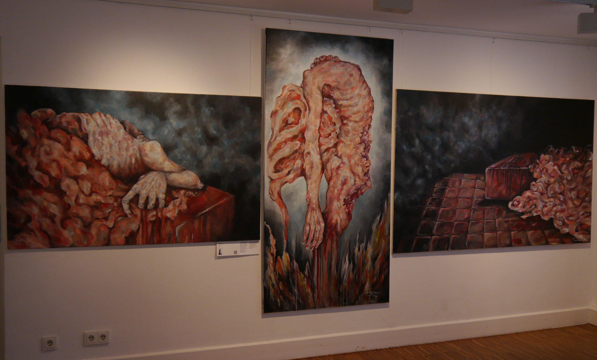 „Schau her!“ will omnipräsenten Gegenständen der menschlichen Lebenswelt eine Bühne schenken, die in der Schnelllebigkeit des Alltags oft aus dem Fokus verschwinden. Im künstlerischen Scheinwerferlicht eröffnen die Werke Einblicke in innere Gefühlswelten, gesellschaftliche Tabus, aber auch scheinbar triviale Momente. Dabei entstehen Werke von großformatiger Malerei, Fotografie, Collage, Mixed Media bis hin zu Skulptur und Plastik.
