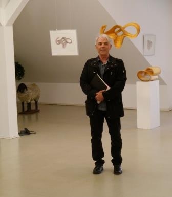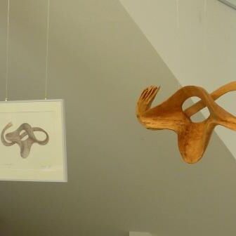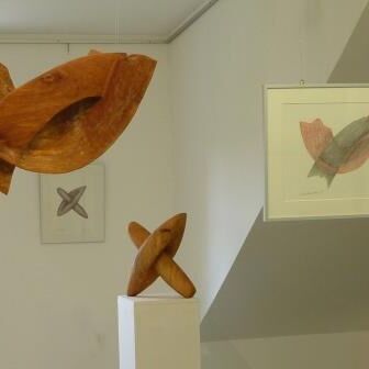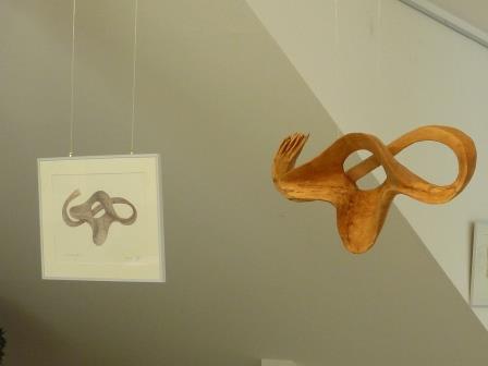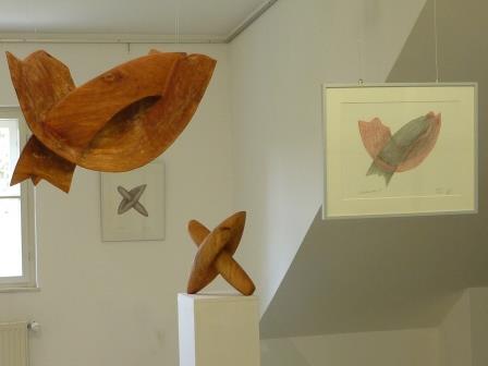 Bei den ausgestellten Holzskulpturen und Zeichnungen handelt es sich um einen Ausschnitt der Serie BrainBridges. Ursprung jeder Skulptur dieser Serie ist eine Zeichnung aus einer der vielen Skizzen-Tagebüchern von Wolfgang Fritz. Es geht bei den täglichen Übungen um freies und intuitives Zeichnen. Seit einigen Jahren setzt er die Zeichnungen in Gestalt von Holzskulpturen um. Die Skizzen werden mit der Kettensäge quasi in Holz dreidimensional „nachgezeichnet“.