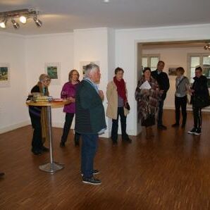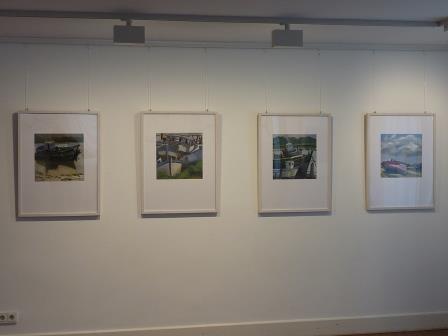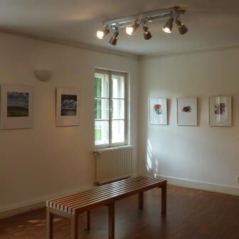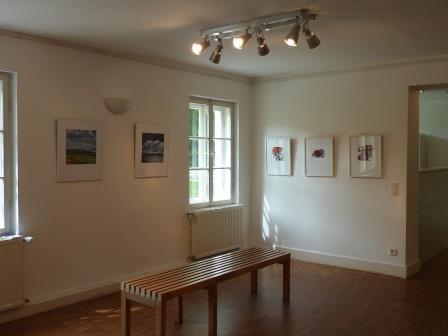 Auf vier Räume verteilt zeigt Monika Arndt ihre Sehnsuchtsorte, angefangen mit Küstenwäldern von der französischen Atlantikküste und den Parasolpilzen aus den Wiesen am Stettiner Haff. Sommer an der Nordseeküste mit seinen Halligen, Wattlandschaften mit weitem Himmel, üppige Blumenwiesen werden in farbigen, expressiv gemalten Bildern eingefangen, ergänzt durch Intagliotypien von den versunkenen Schiffen an der französischen Atlantikküste. Es sind minimalistisch anmutende Grafiken in Peynesgrau, Schwarz und Rötel - wie eine Essenz, gezogen aus der farbigen Vielfalt.