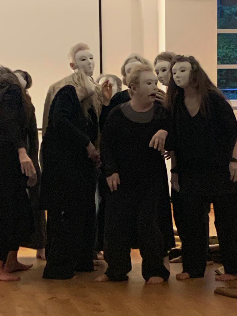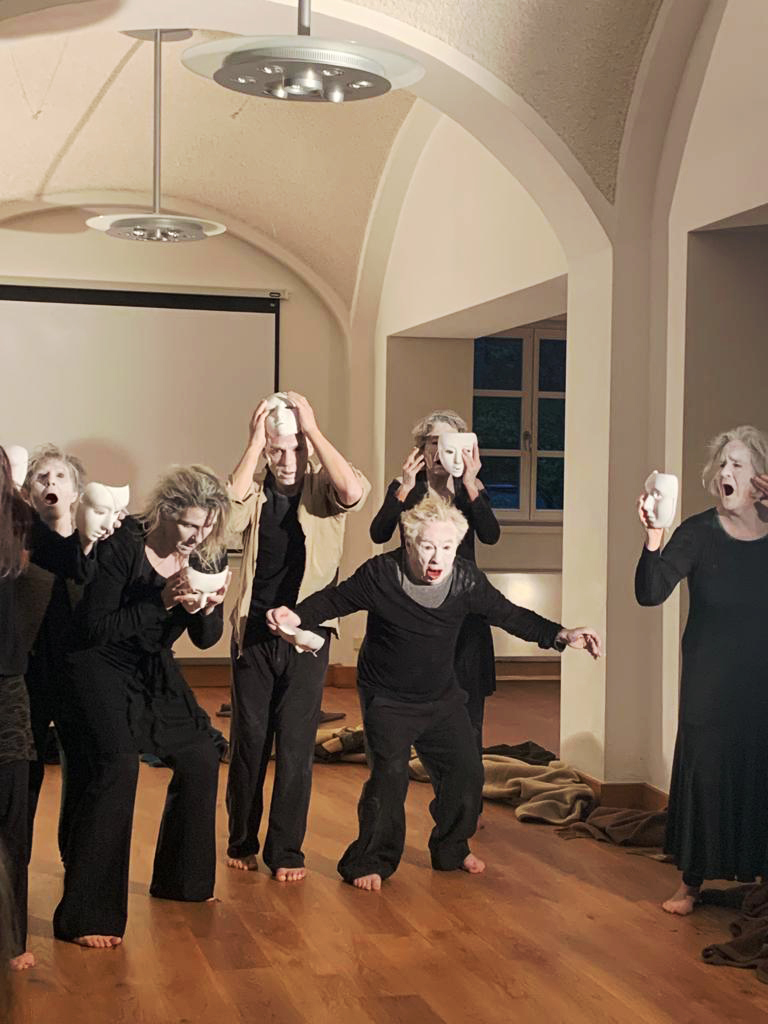 Im Butoh hinterfragen wir den so erlernten Schleier der Persona, um schließlich mit unserem verborgenen Antlitz und den vielfältigen Emotionen in Berührung zu kommen. Eine manifeste Spaltung von Gesicht und Körper kann so schrittweise aufgehoben werden und eine kreative Integration ermöglichen, welche befreiend wirkt.