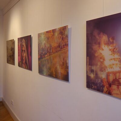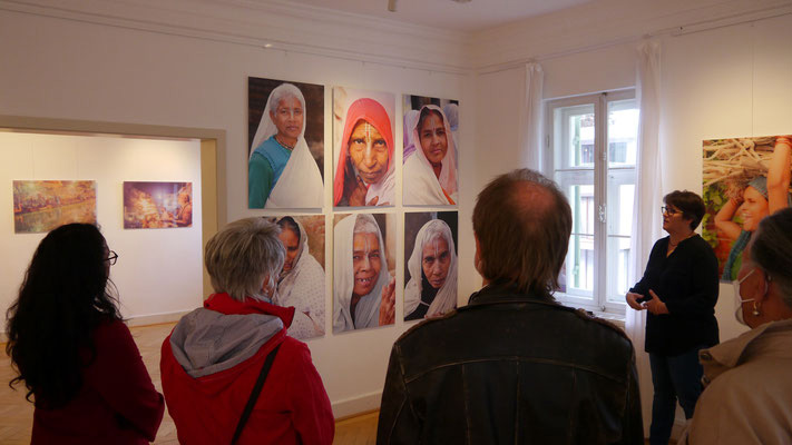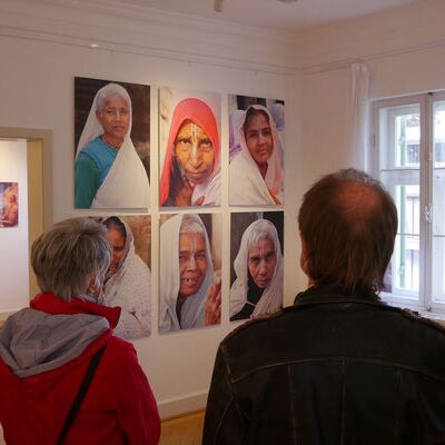Eva Huber ist auch Mitglied des Vereins „Braj Care“, der in Indien mittellose Witwen und Sadhus mit medizinischer Versorgung, Decken und warmen Essen unterstützt sowie Schulen für benachteiligte Kinder unterhält. Einige der Witwen werden in der Ausstellung vorgestellt.