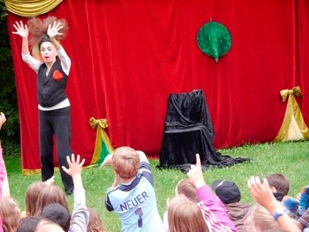 Mit viel clowneskem Humor und ganz ohne Worte bringt die erfahrene Pantomimin und Performerin Ingrid Irrlicht Klein und Groß zum Lachen. „Miteinander lachen – nicht übereinander“ lautet das Motto ihres Programms, mit dem sie seit Jahren erfolgreich in In- und Ausland gastiert. Ingrid Irrlichts Spiel zeigt, dass alle Menschen überall gerne lachen und dass mit Humor auch das aktive Aufeinander-Zugehen leichter fällt.