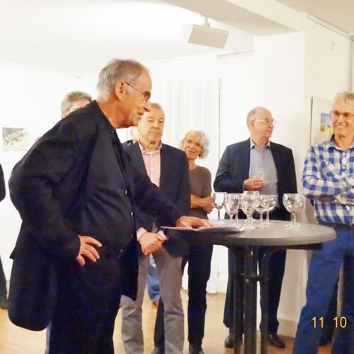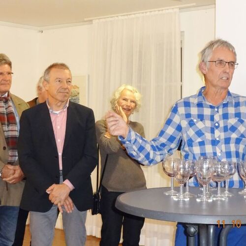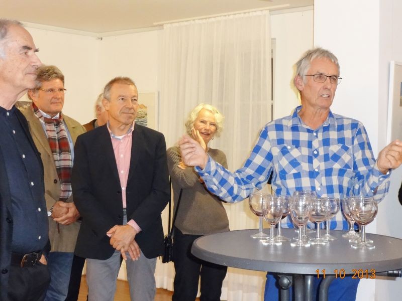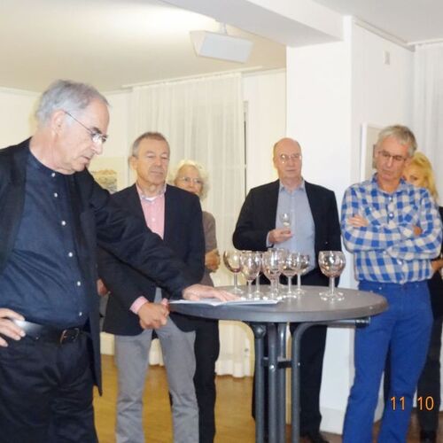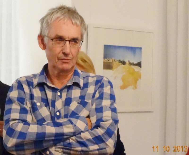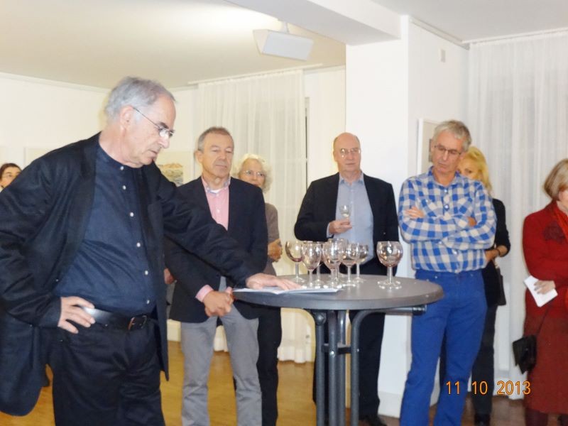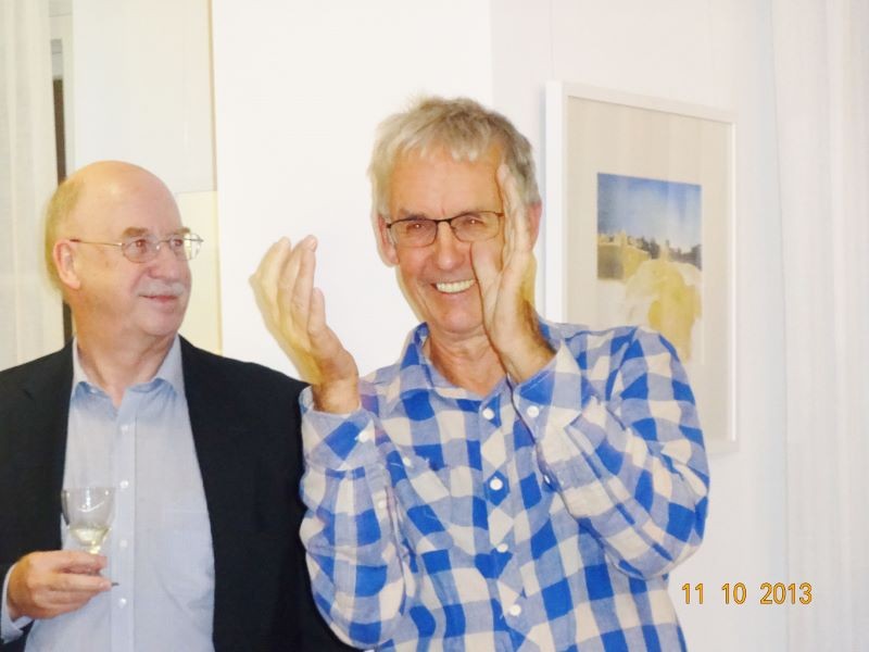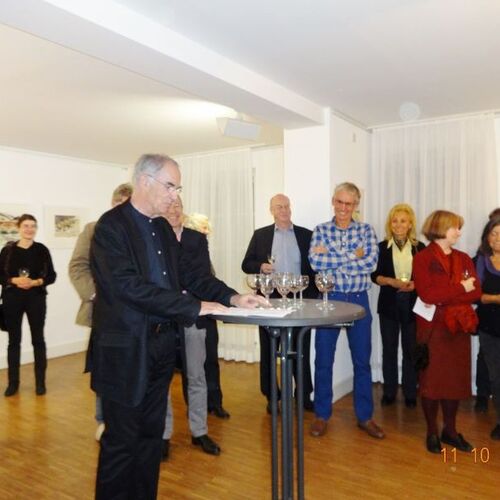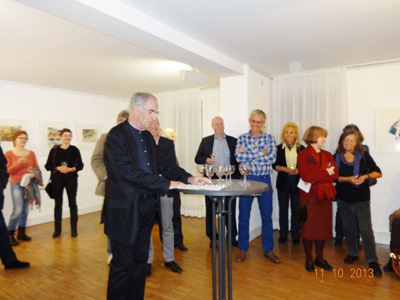 Die Ausstellung zeigte Werke des Aquarellisten. Seine reduzierte Malweise lässt dem Betrachter die Möglichkeit, eigenes Empfinden in die Interpretation miteinzubeziehen. So stehen neben großen Flächen unbemalten Papiers impulsiv gesetzte Farbflecken, die ein Motiv andeuten, ohne es auszuformulieren.